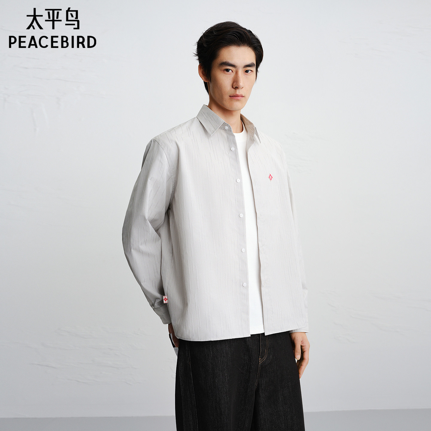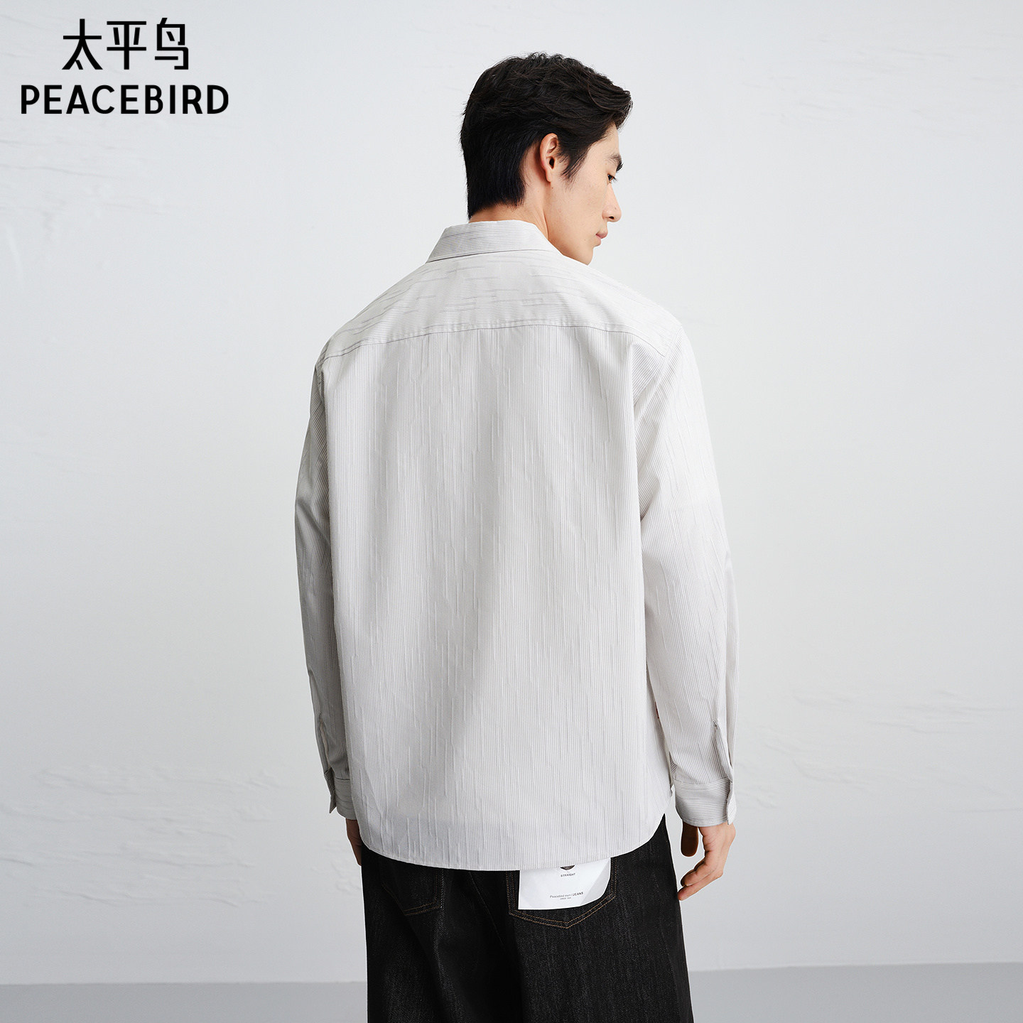 太平鸟男装 休闲衬衫2026春季新款肌理晕染衬衫印花男士时尚衬衫