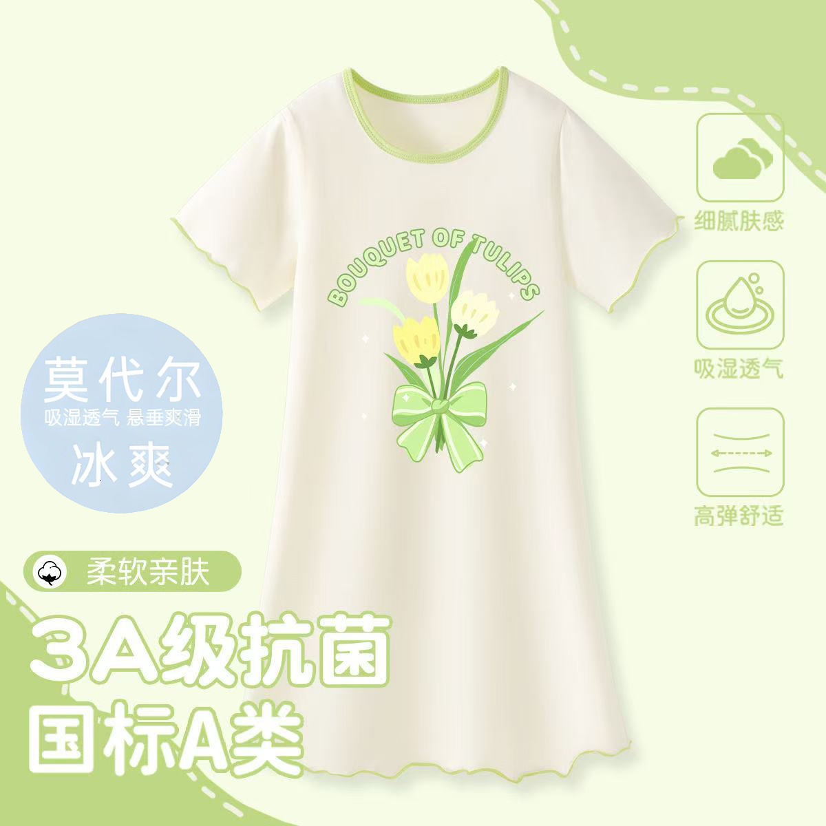 莫代尔女童睡裙夏季女孩库洛米卡通短袖睡袍中大童睡衣新款家居服