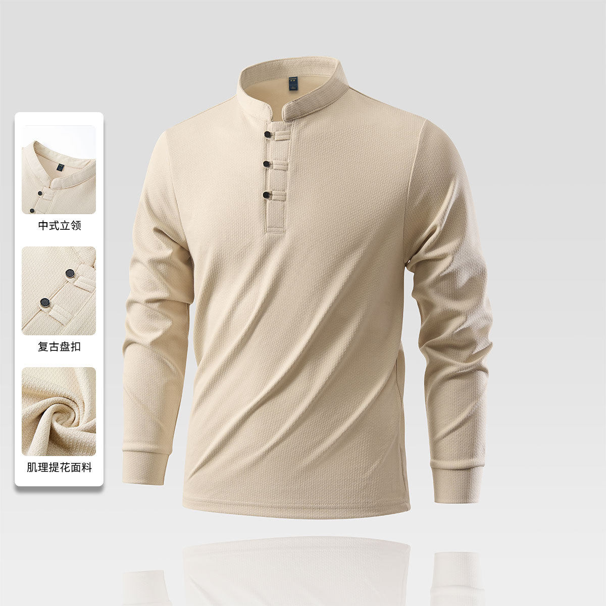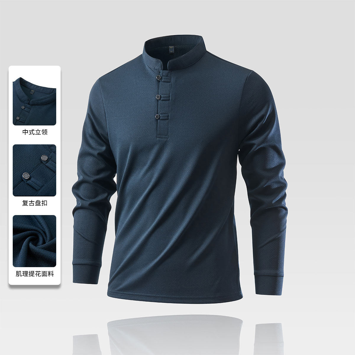 罗蒙新中式立领唐装春秋男长袖T恤中国风复古盘扣打底衫体恤上衣