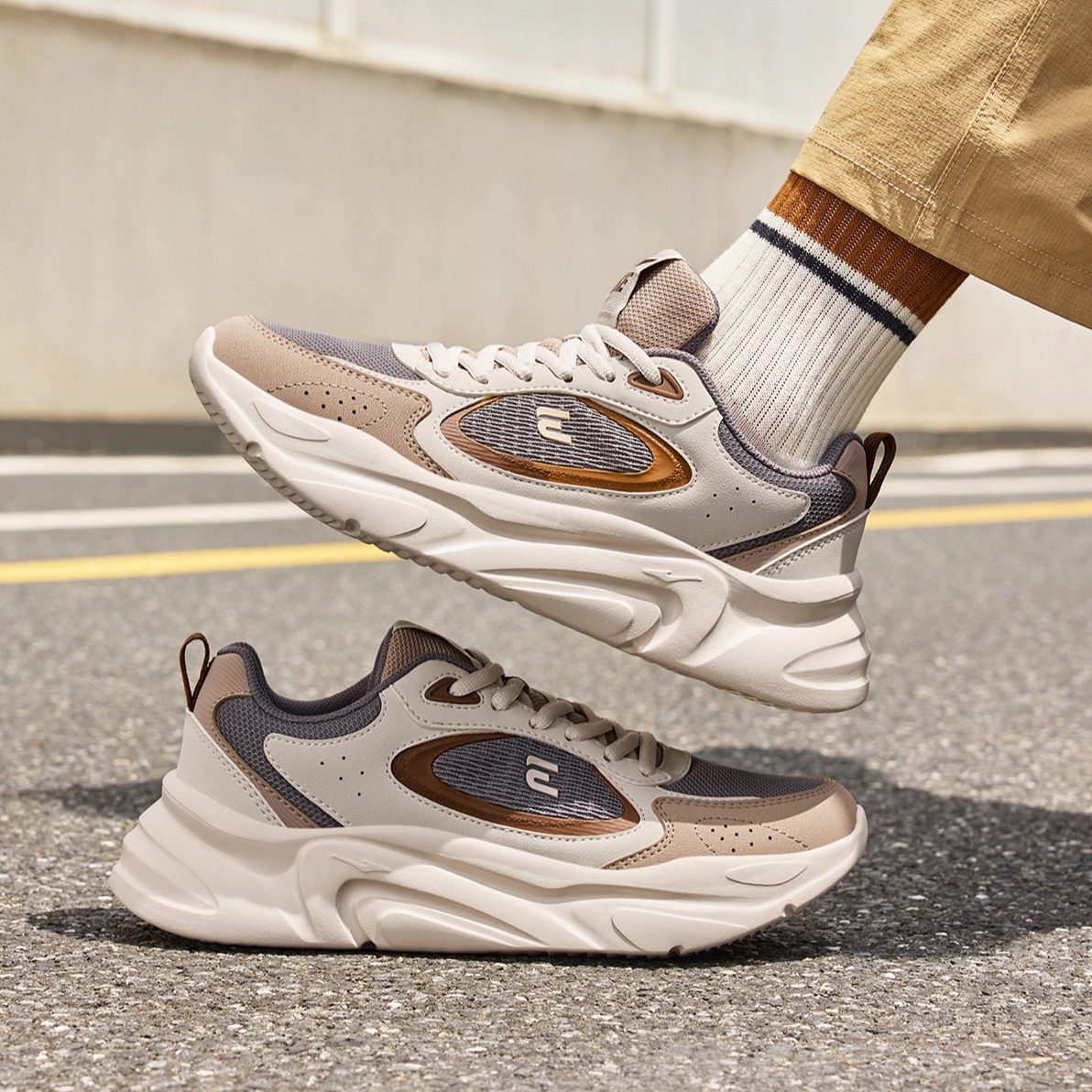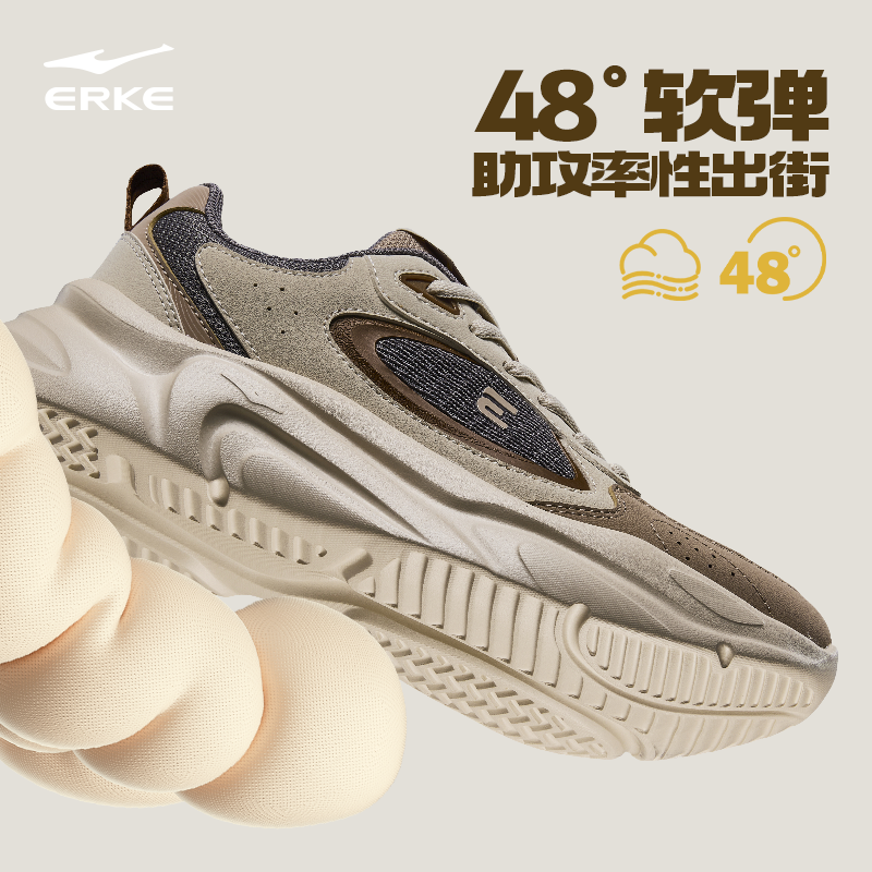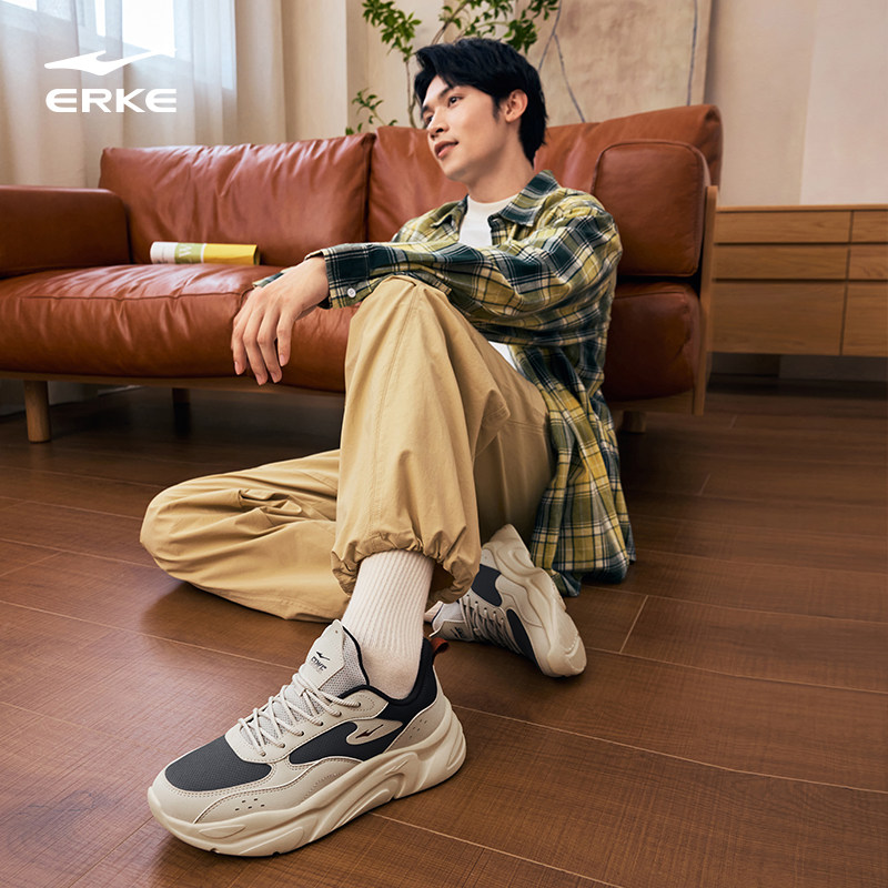 鸿星尔克男鞋秋季运动鞋革面休闲鞋增高厚底鞋轻便网面透气跑步鞋