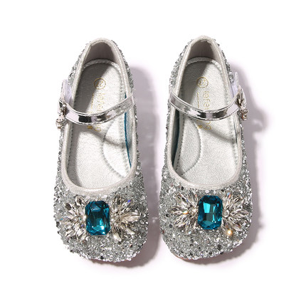 女童公主鞋冰雪奇缘水晶蝴蝶结