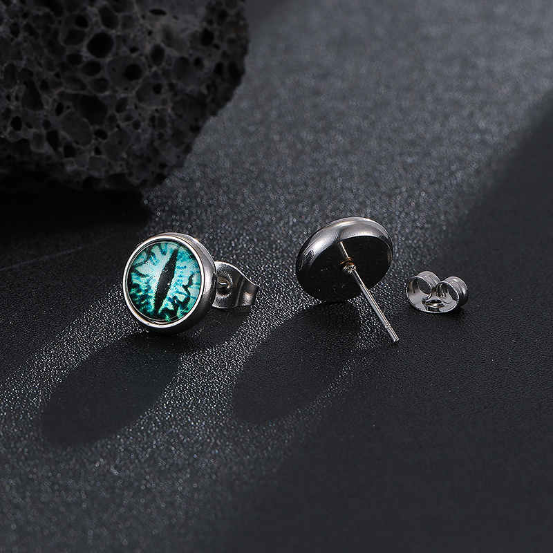 恶魔之眼钛钢耳钉男琉璃耳饰复古个性赛博朋克不掉色高级感饰品女