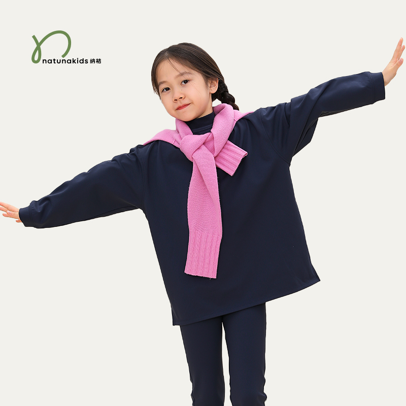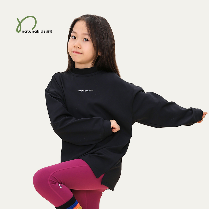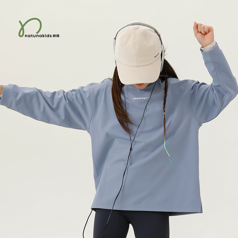 纳桔亲子儿童加绒卫衣秋冬季男女童长袖高弹加绒户外运动训练上衣