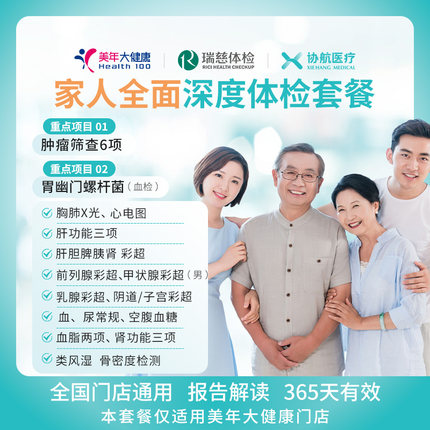 美年大健康瑞慈体检家人全面深度体检套餐父母成人男女全国通用