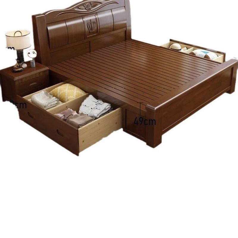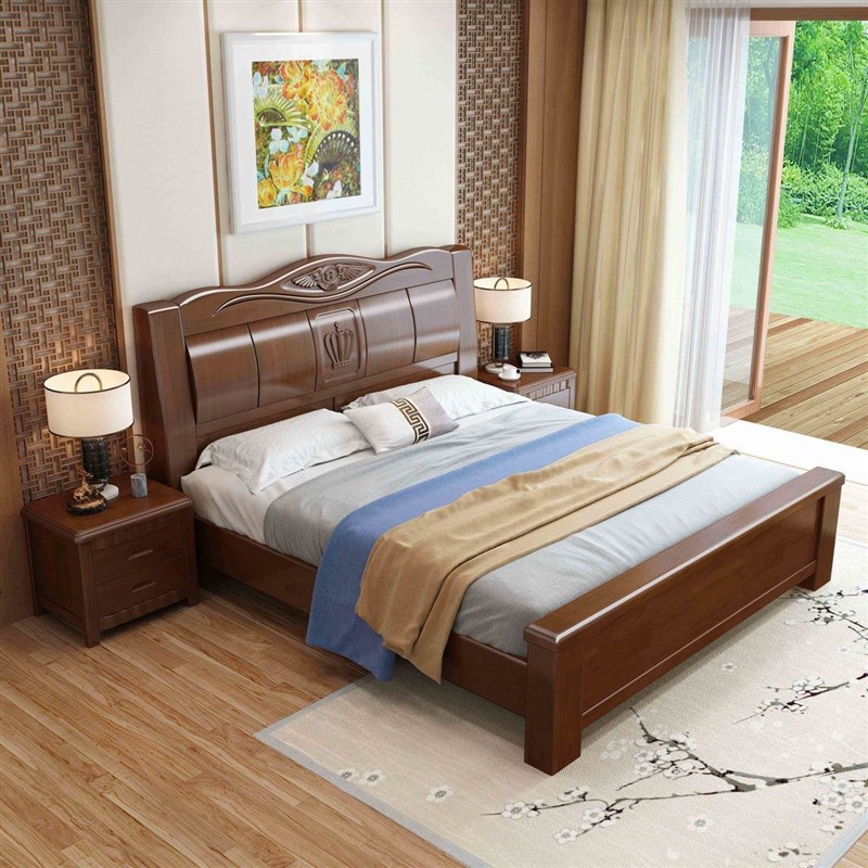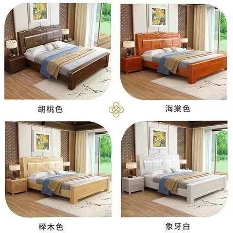 中式实木床现代简约橡木床1.8米主D卧双人床1.5米卧室家用储物床