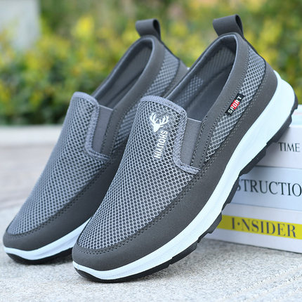 夏季老北京布鞋男透气网面一脚蹬爸爸鞋网鞋轻便防滑运动鞋健步鞋