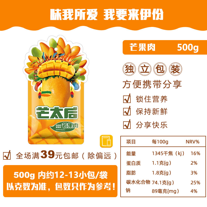 来伊份芒果肉500g水果干原果丰润