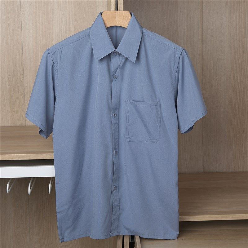 夏季雪纺爸爸短袖衬衫老人男士衬衣宽松J中老年爷爷夏装冰丝上衣