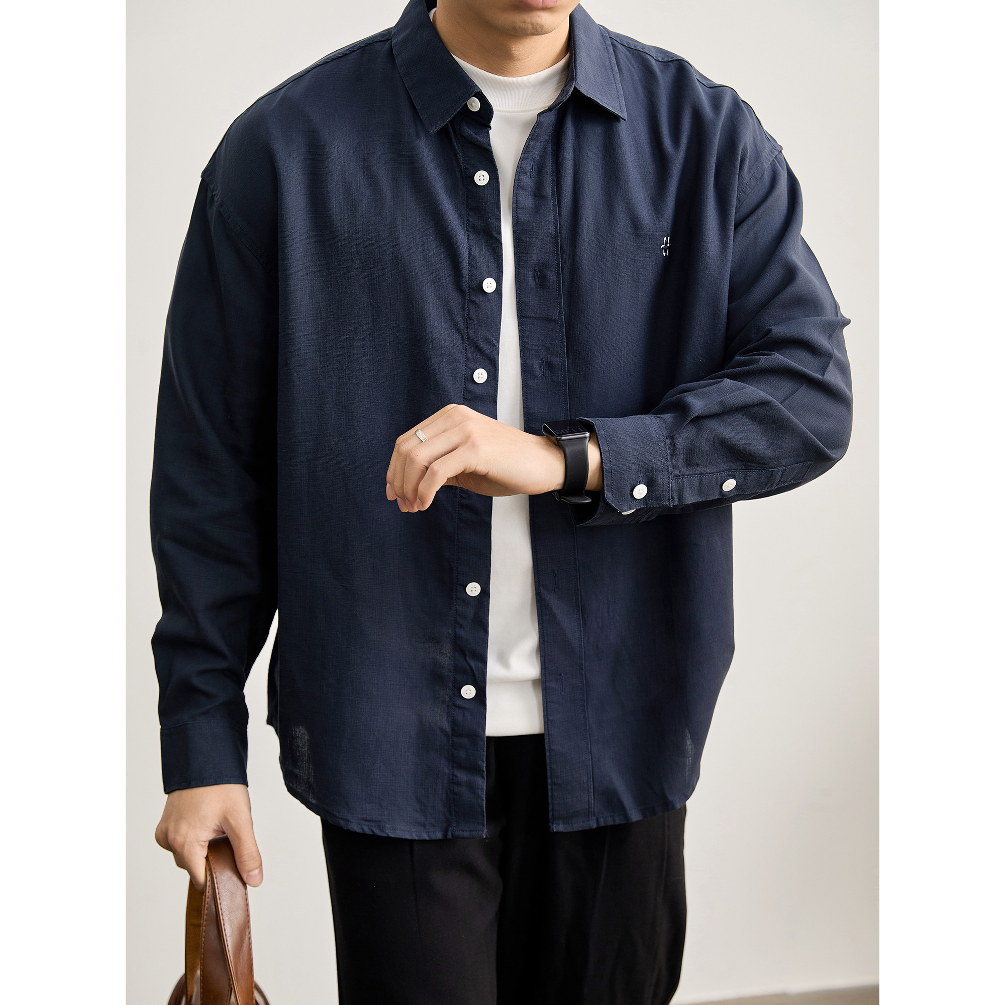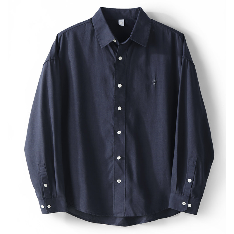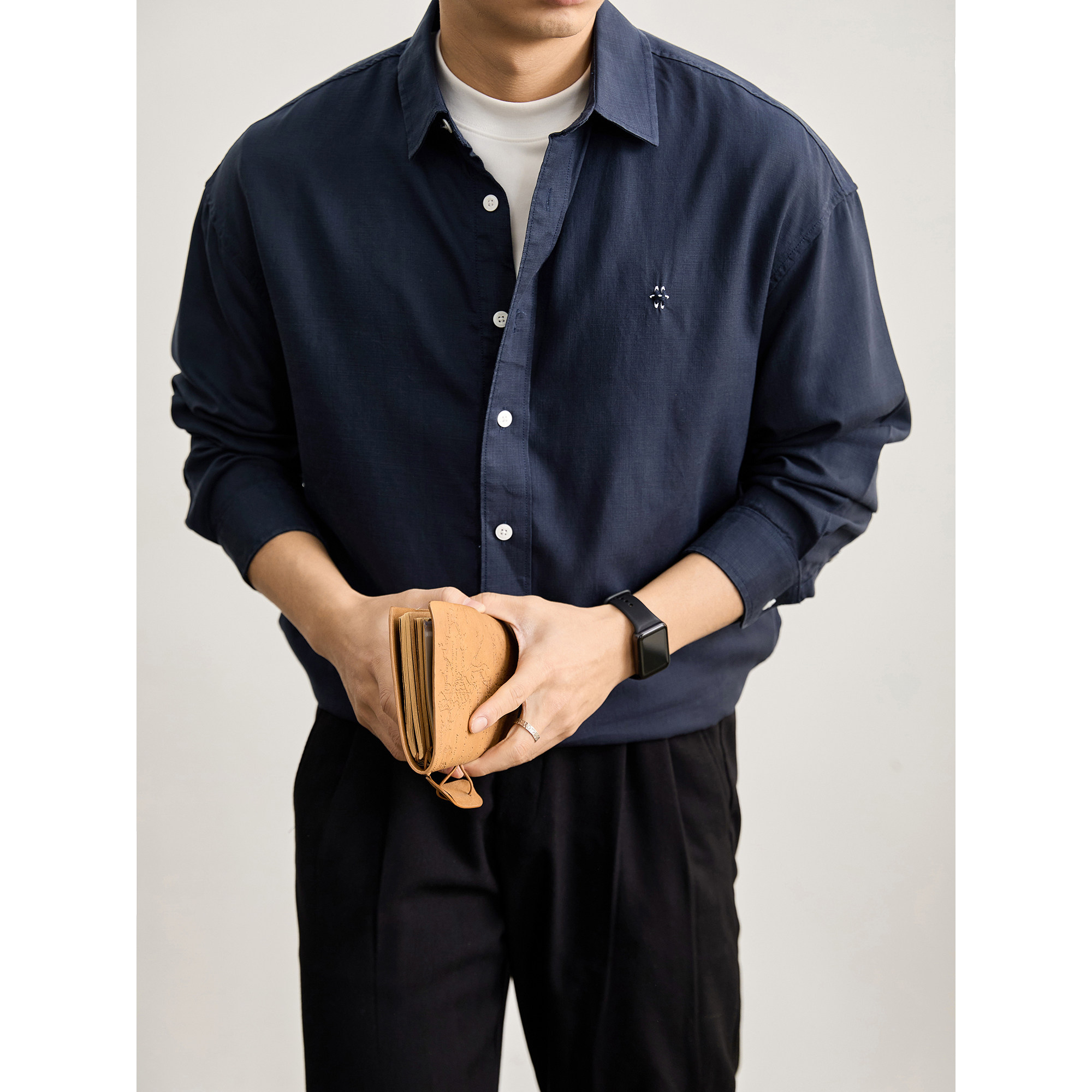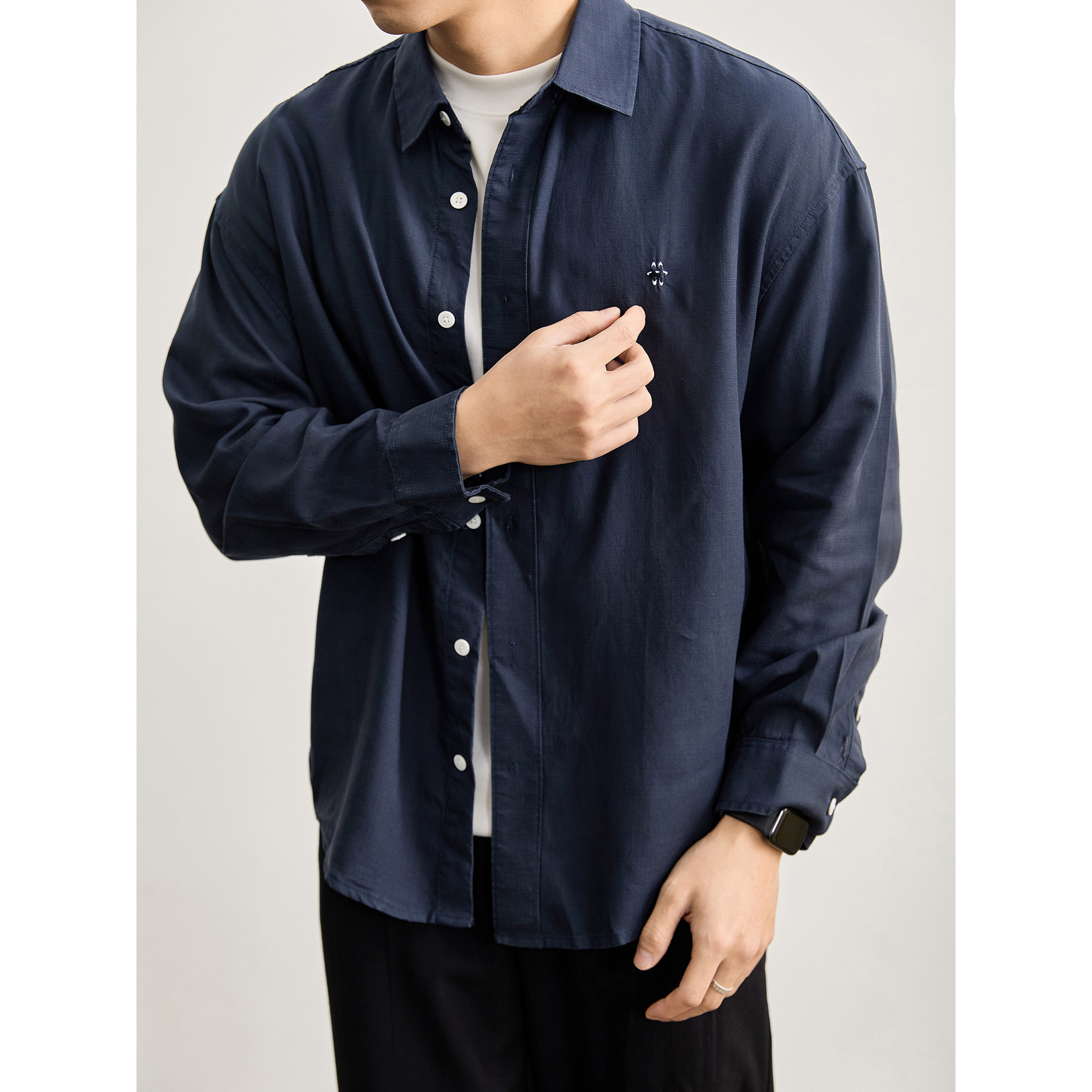 LUUD 亲肤透气天丝莱赛尔翻领衬衣外套撞色小刺绣点缀长袖衬衫男