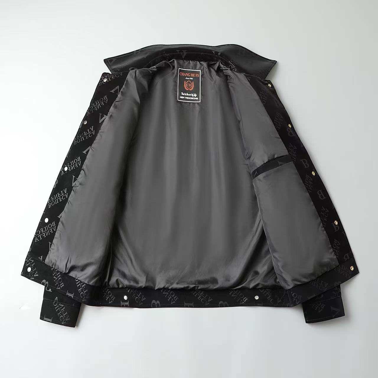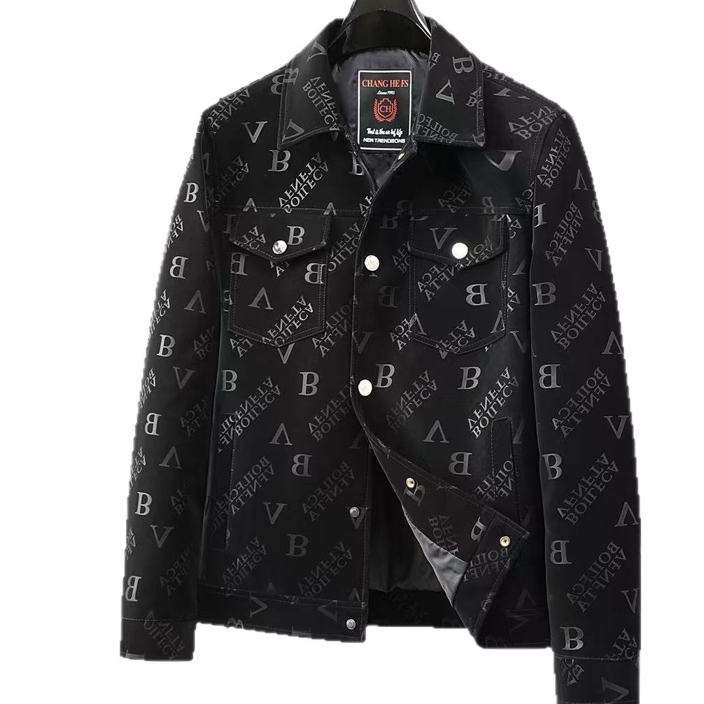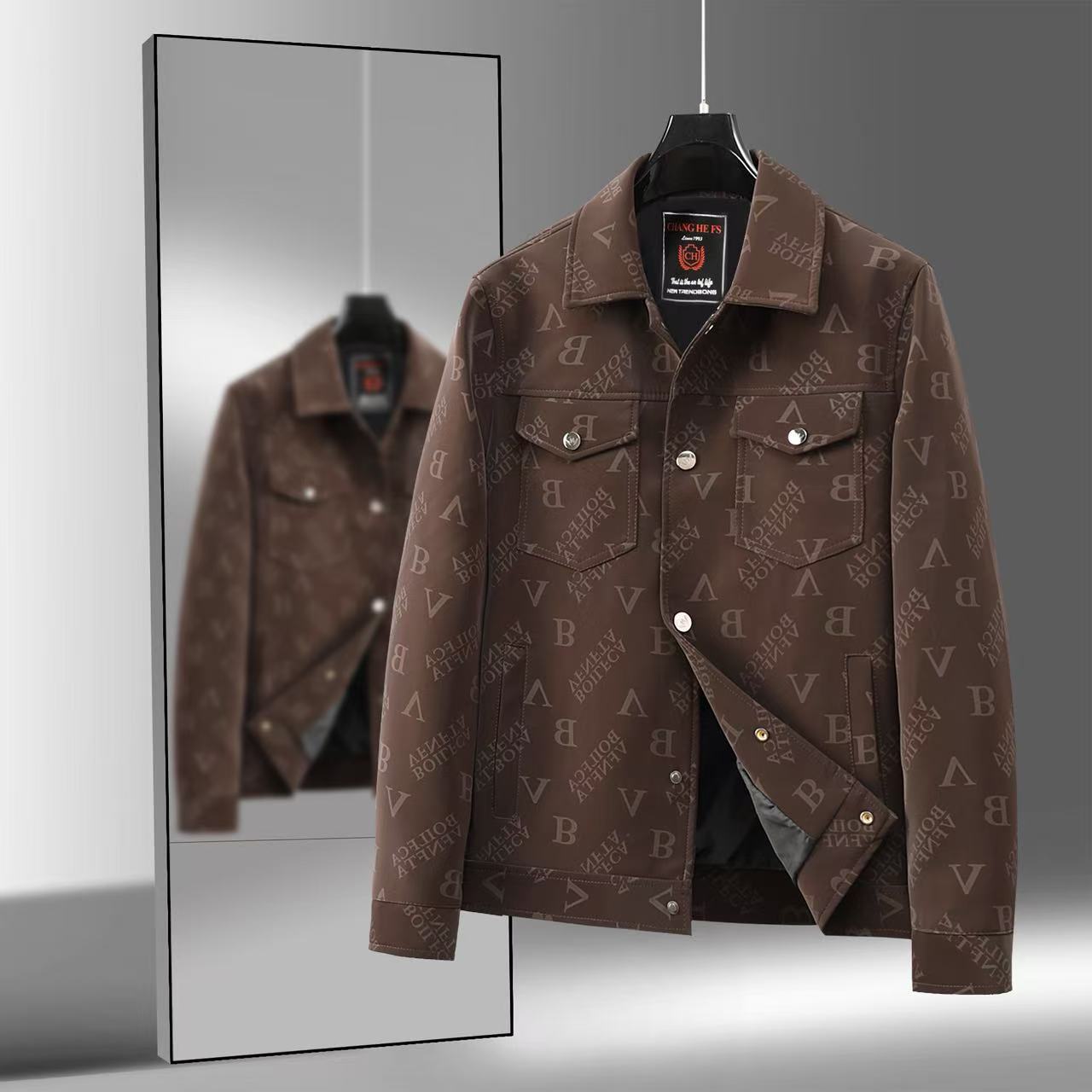 2025春秋季新款黑色压花翻领PU短款夹克皮衣男款时尚休闲百搭外套