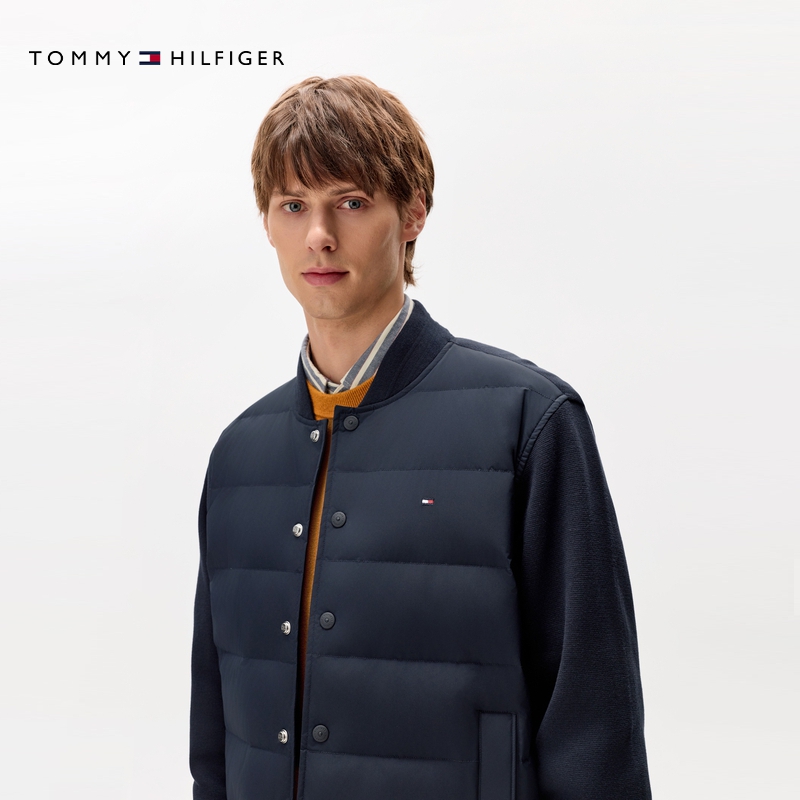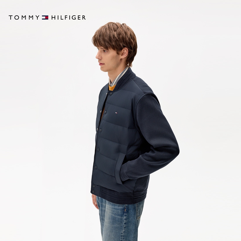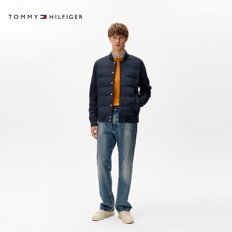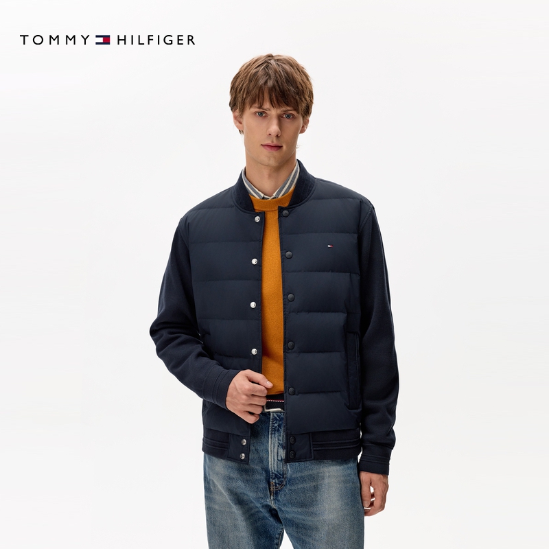 Tommy秋冬男装商务休闲通勤青年90鹅绒拼接棒球领针织开衫外套