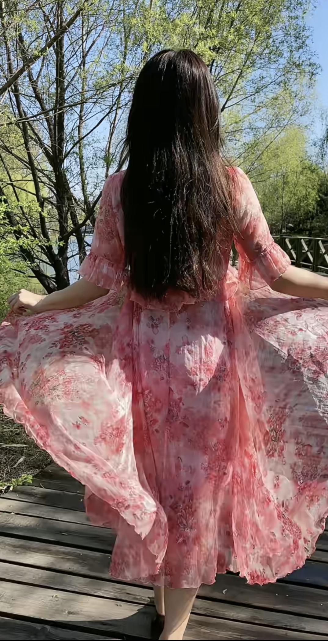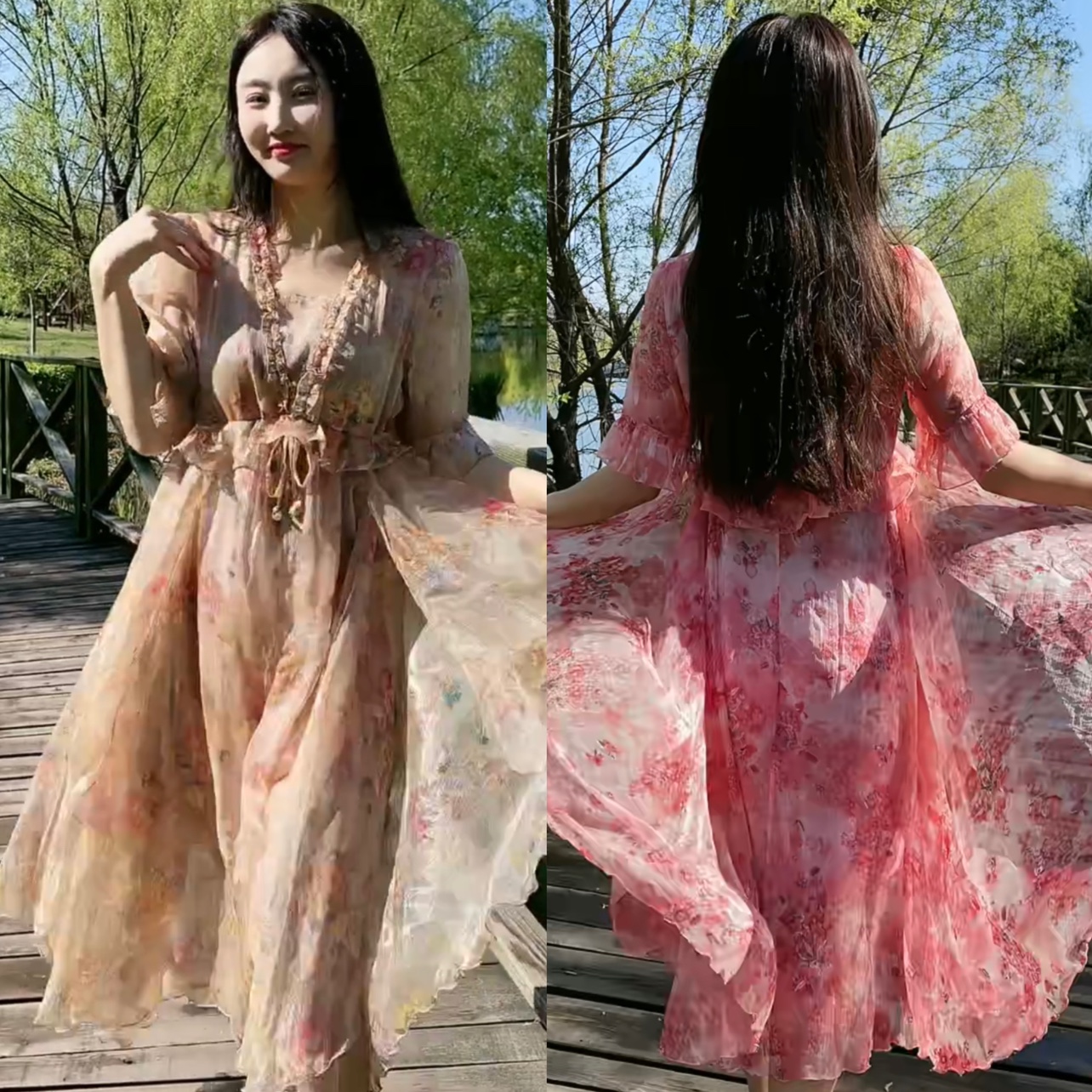 网红爆款碎花连衣裙2023夏季新款高级感减龄漂亮仙气飘飘的仙女裙