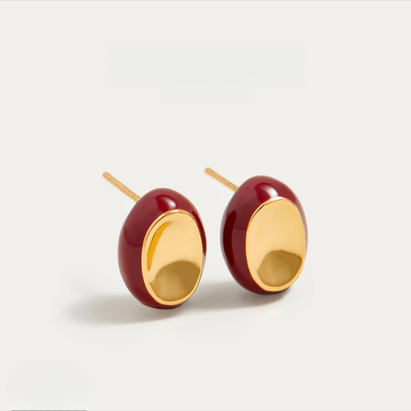 安可拉红色椭圆形滴釉耳钉女简约时尚复古风小众百搭高级感耳饰