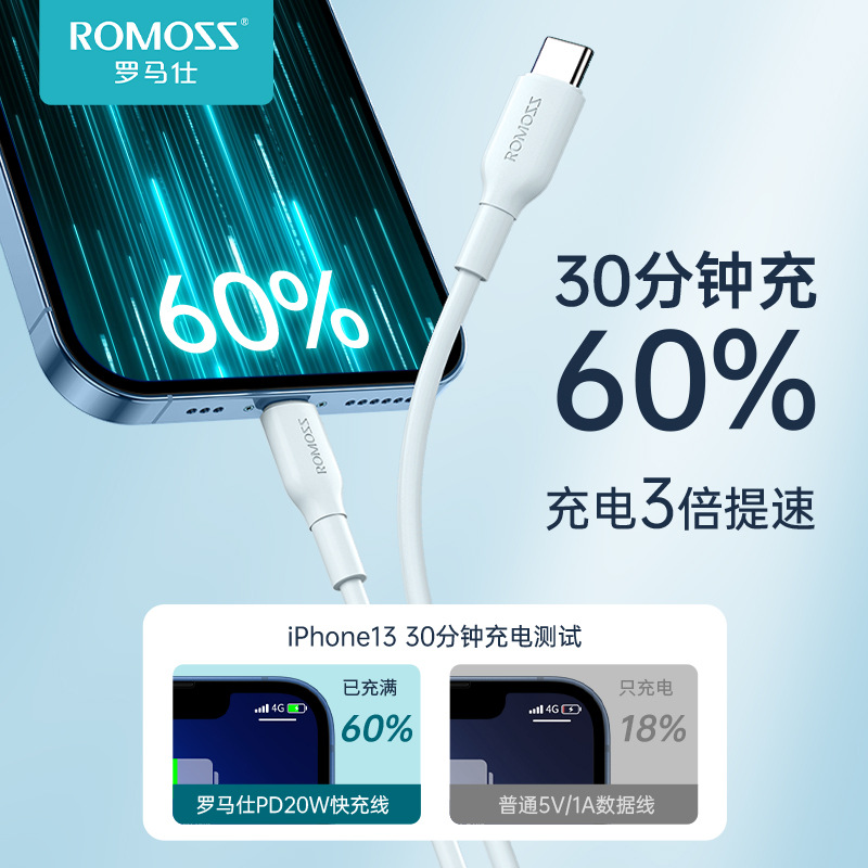 罗马仕适用苹果PD快充数据线20/30W适用iPhone8-14手机iPad平板充电线手机平板2米可选