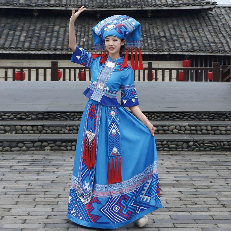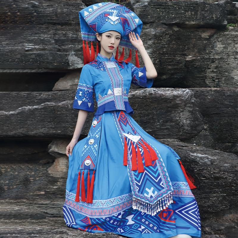 新款壮族服装女广西三月三少数民族壮锦成人服饰舞蹈演出旅拍套装