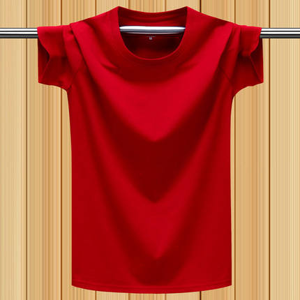 夏季T恤圆领汗衫纯色短袖男女情侣装半袖上衣服 酒红色