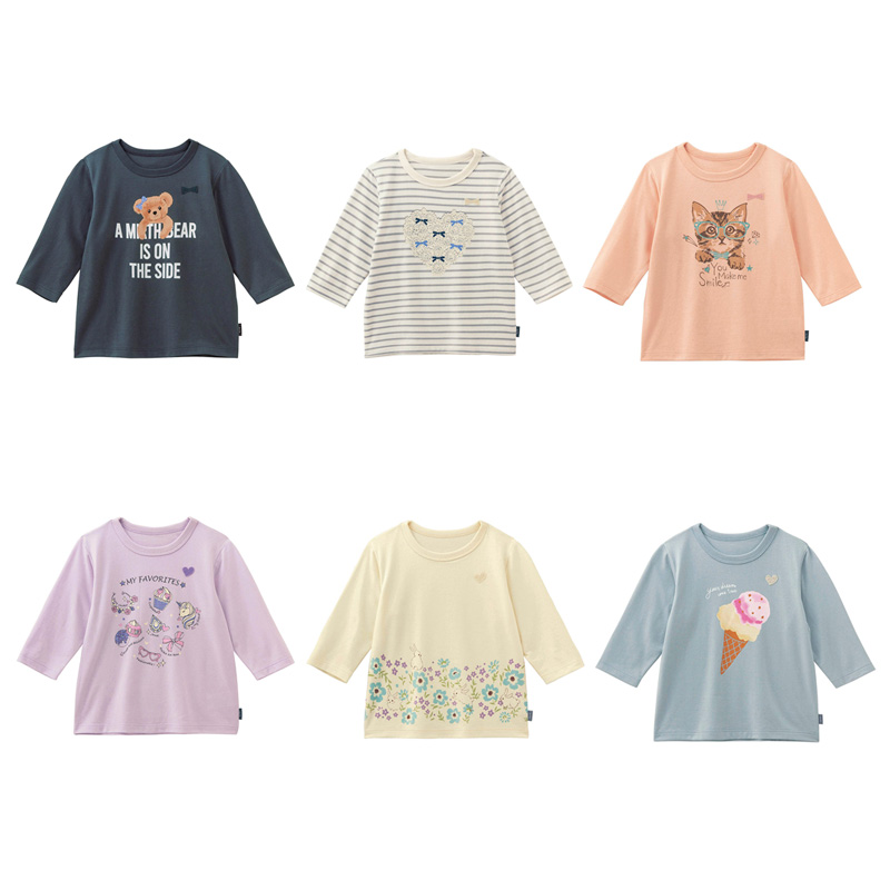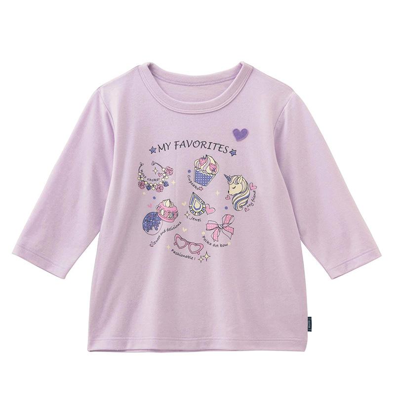外贸原单童装 可爱甜美印花 棉质针织上衣 女童简约休闲七分袖T恤