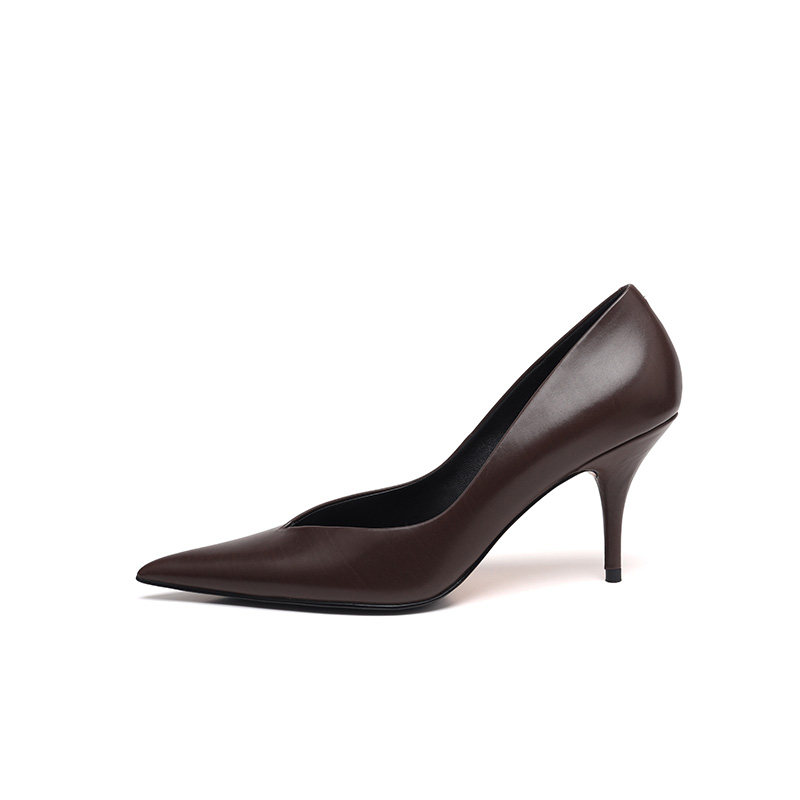 ALEXSARA原创设计 2026早春新款 尖头V口细跟胎牛皮素面高跟单鞋