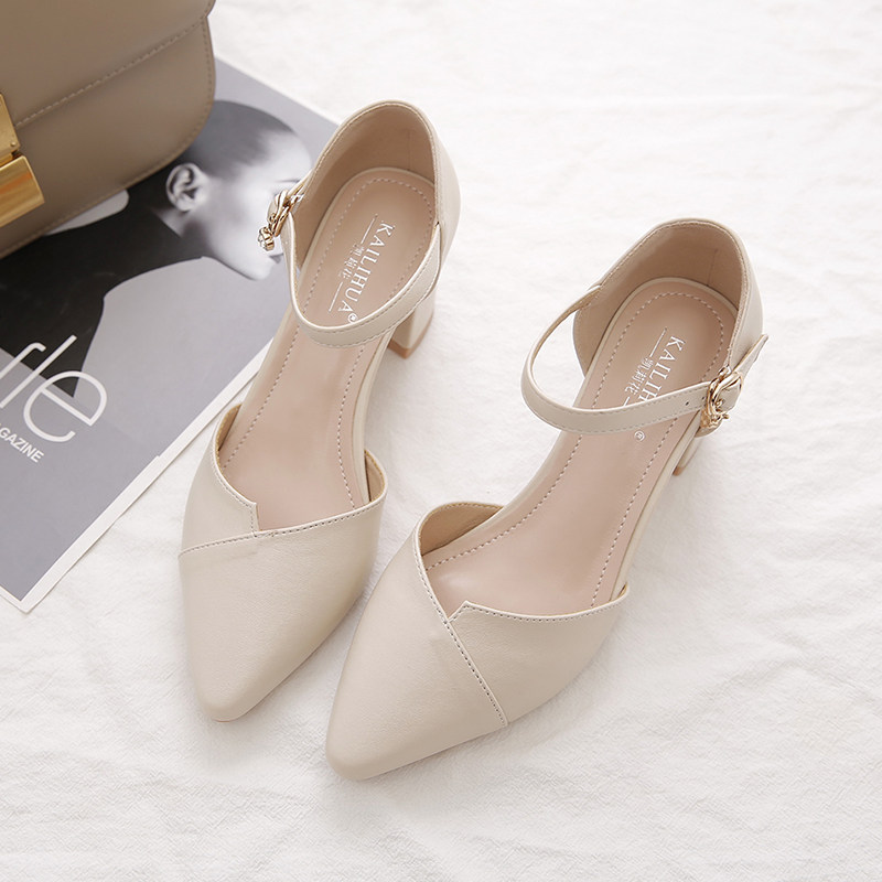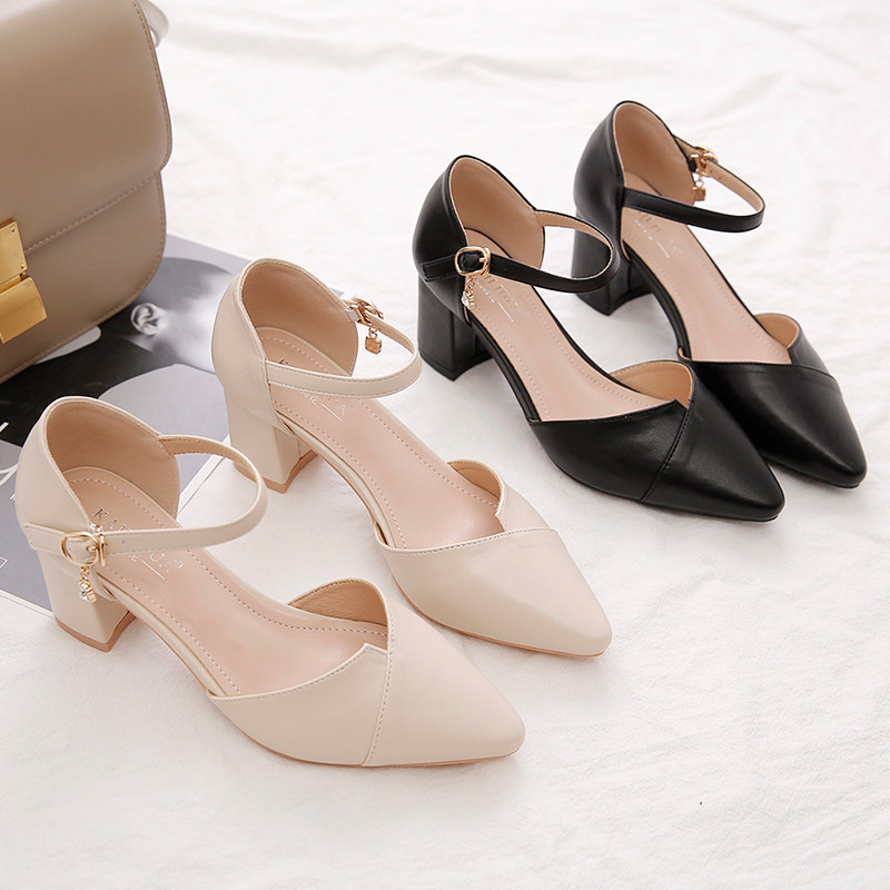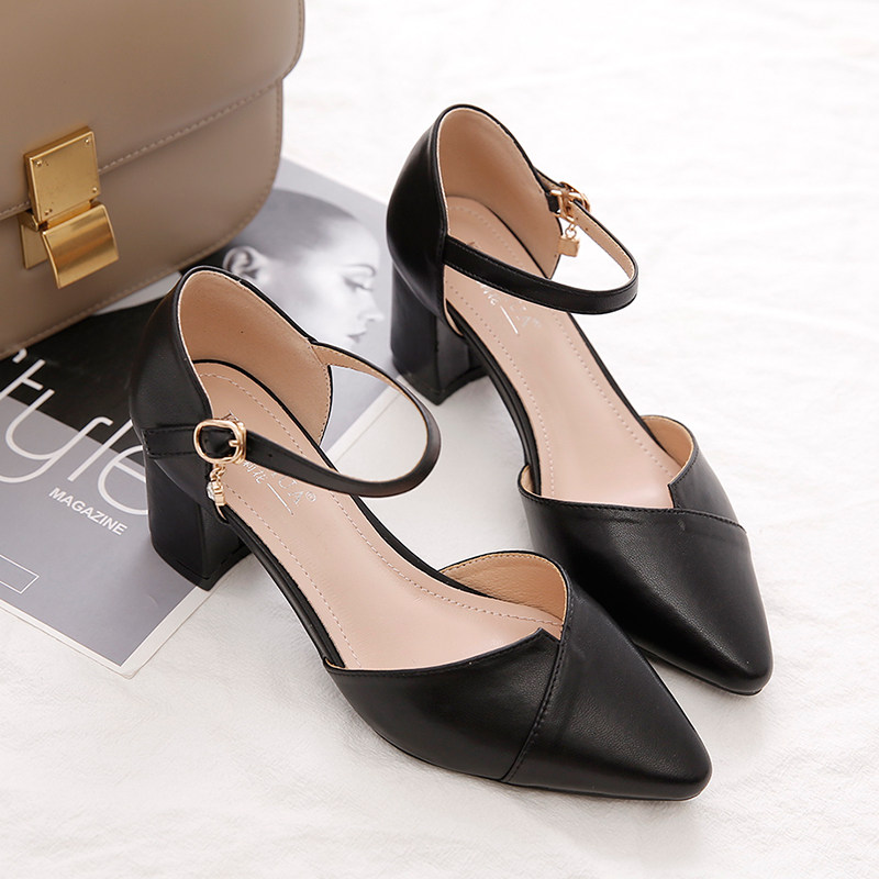 尖头包头凉鞋百搭粗跟高跟鞋单鞋