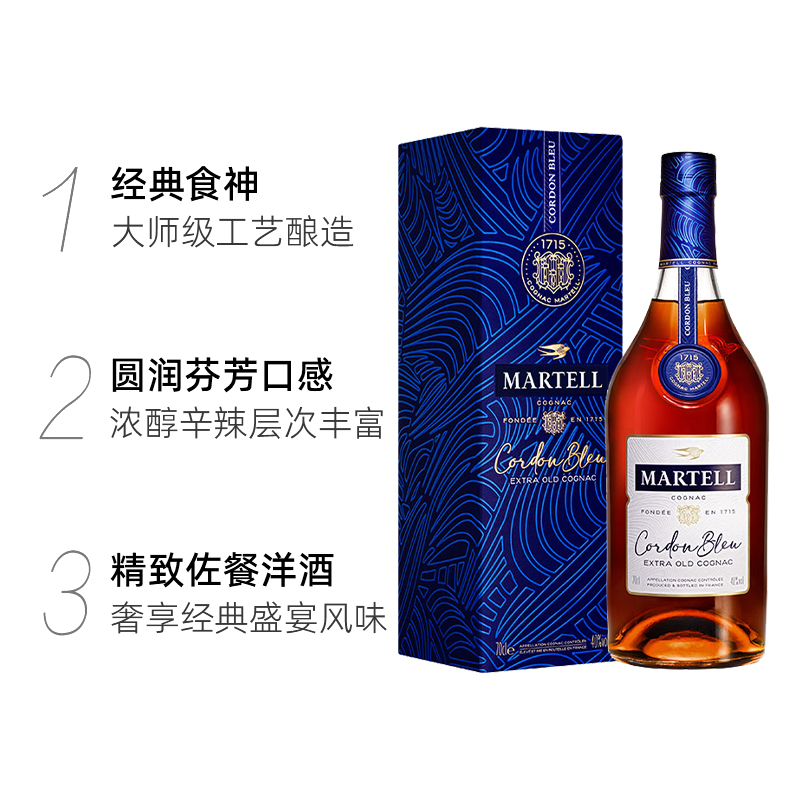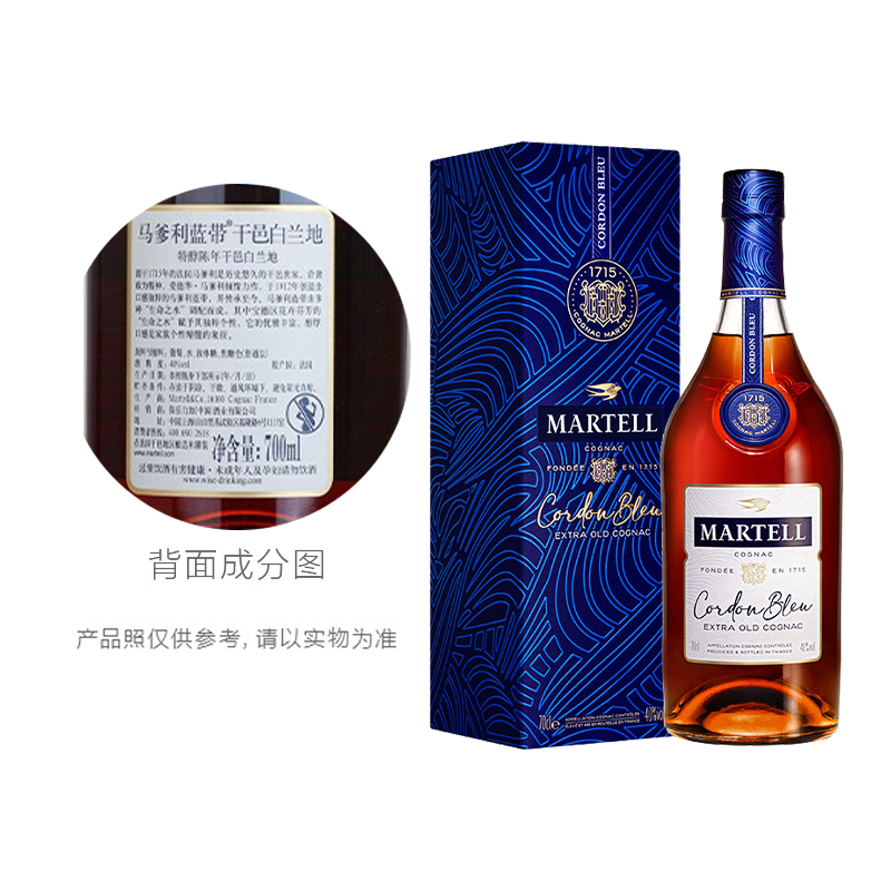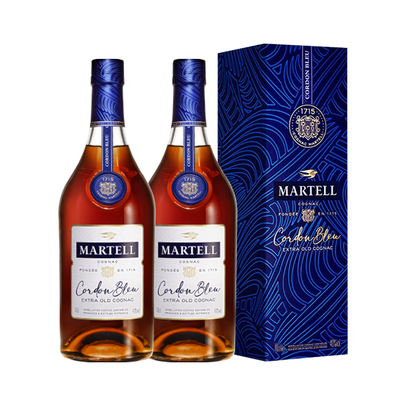 【品牌直供】马爹利蓝带干邑白兰地700ml*2瓶洋酒烈酒礼盒收藏送