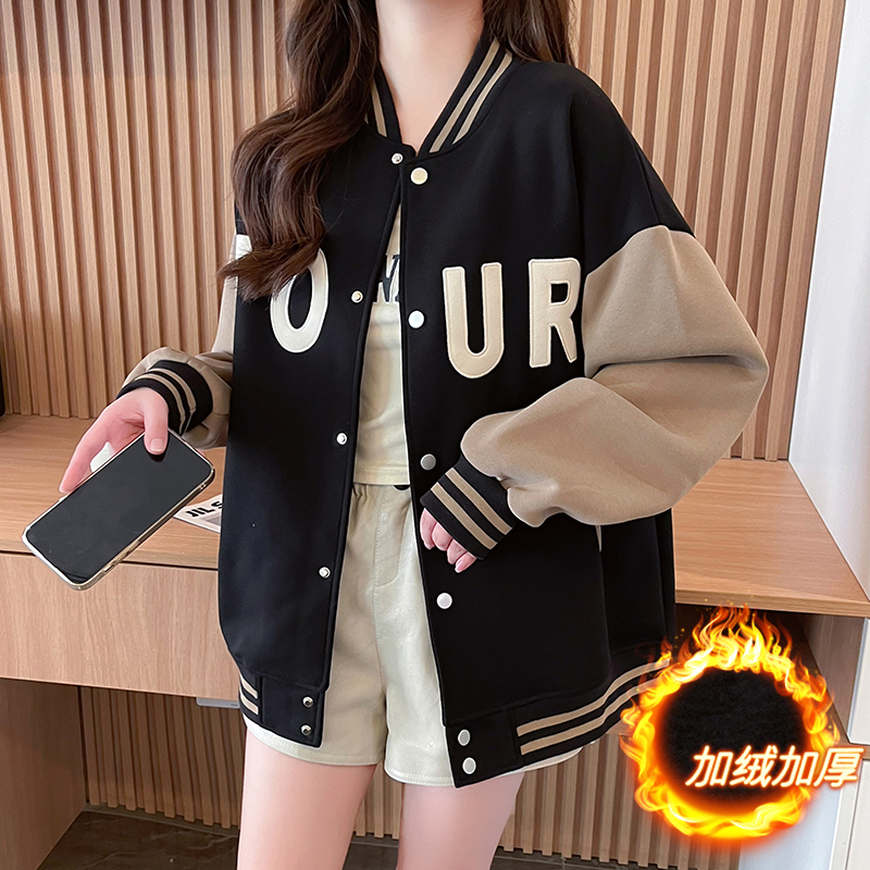 开衫卫衣外套女秋冬加绒加厚宽松中长款特大码胖mm学生棒球服夹克