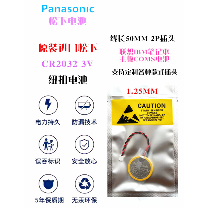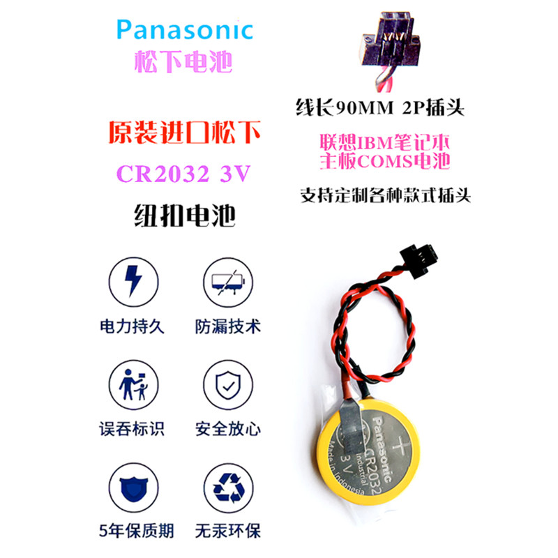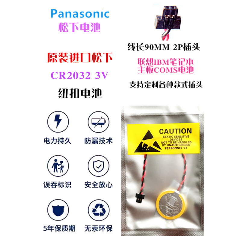 松下CR2032带线联想惠普戴尔笔记本台式主板COMS黑色插头纽扣电池