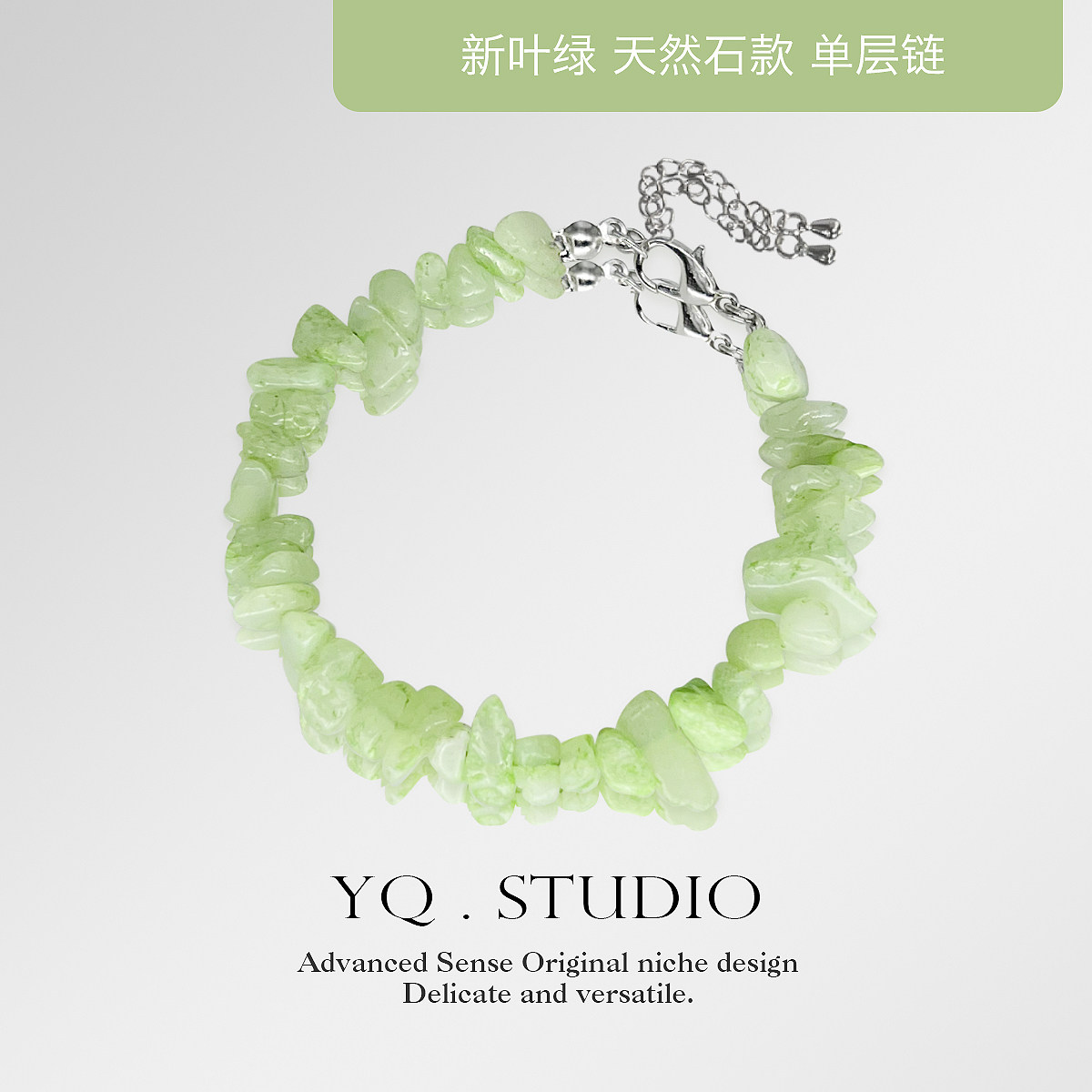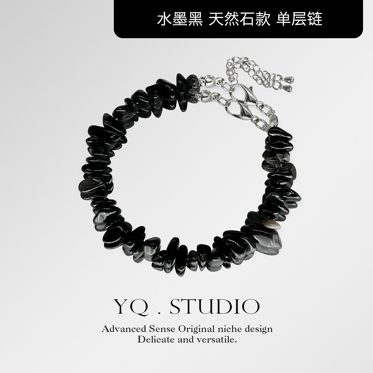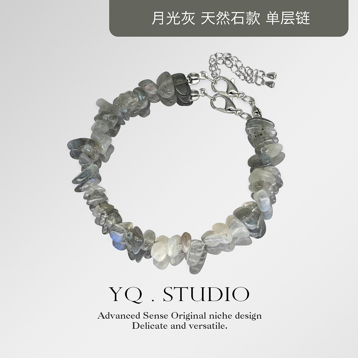 YQ.STUDIO|原创设计月光灰天然石玉石链条手链ins设计感冷淡风潮
