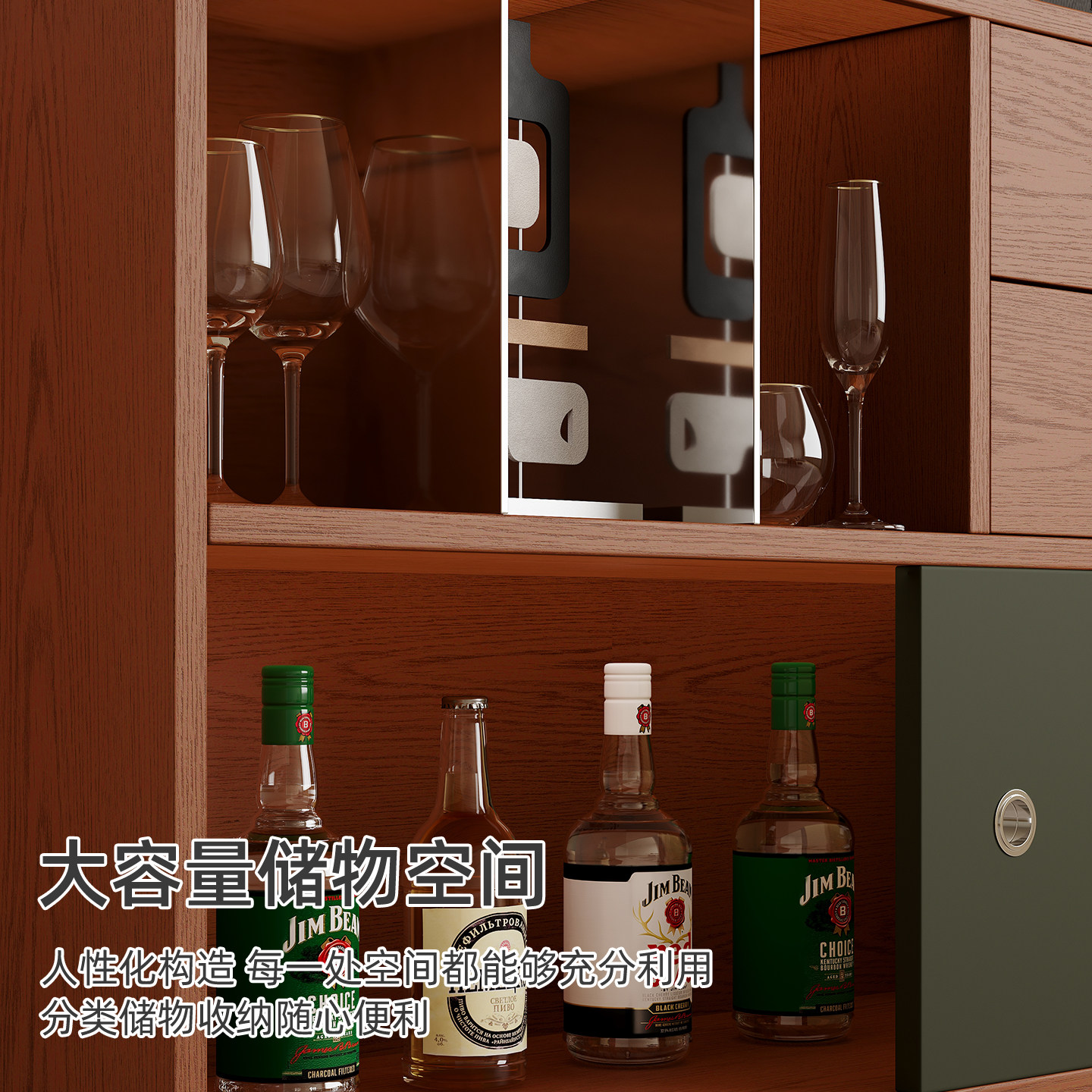 实木中古风靠墙一体储物餐边柜