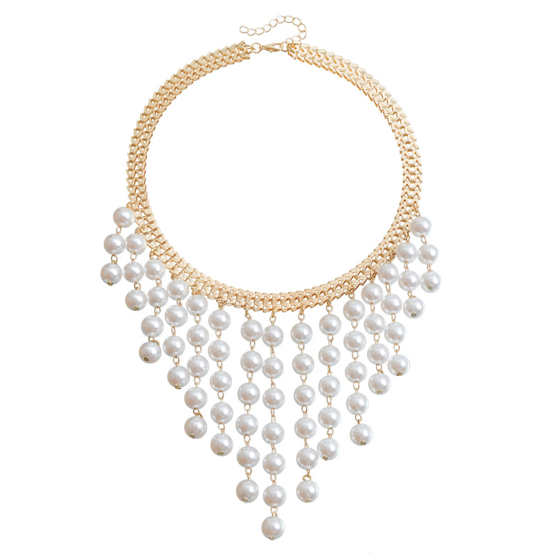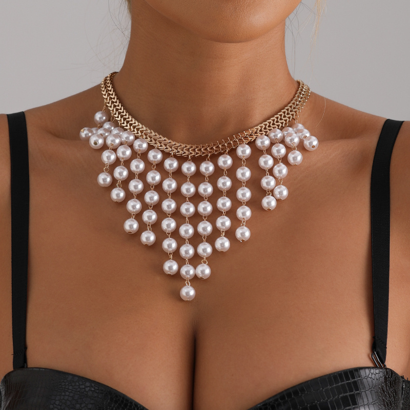 欧美饰品多层长款珍珠流苏项链潮流个性字母夸张毛衣链锁骨链首饰