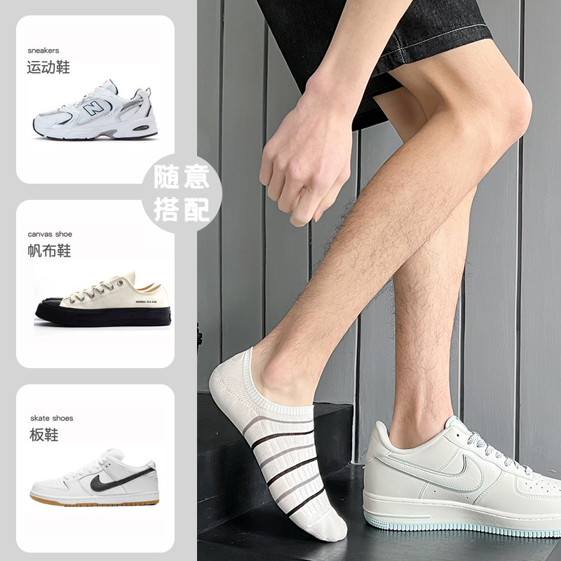 黑白色隐形袜子男春夏季薄款透气双针纯棉男士防臭浅口不掉跟船袜