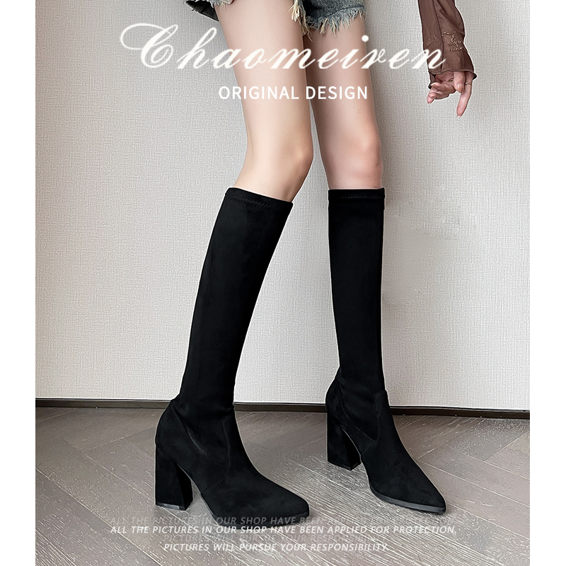 高跟显瘦弹力靴粗跟高筒靴女长靴