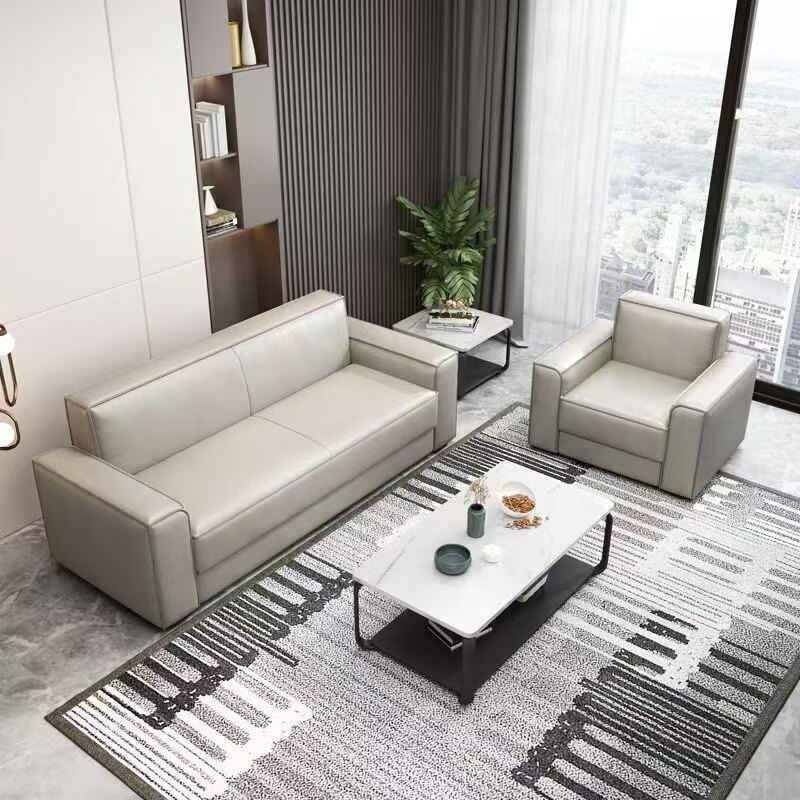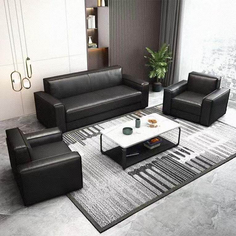 小户型办公沙发商务接待会客厅休息区双三人位简约皮沙发茶几组合