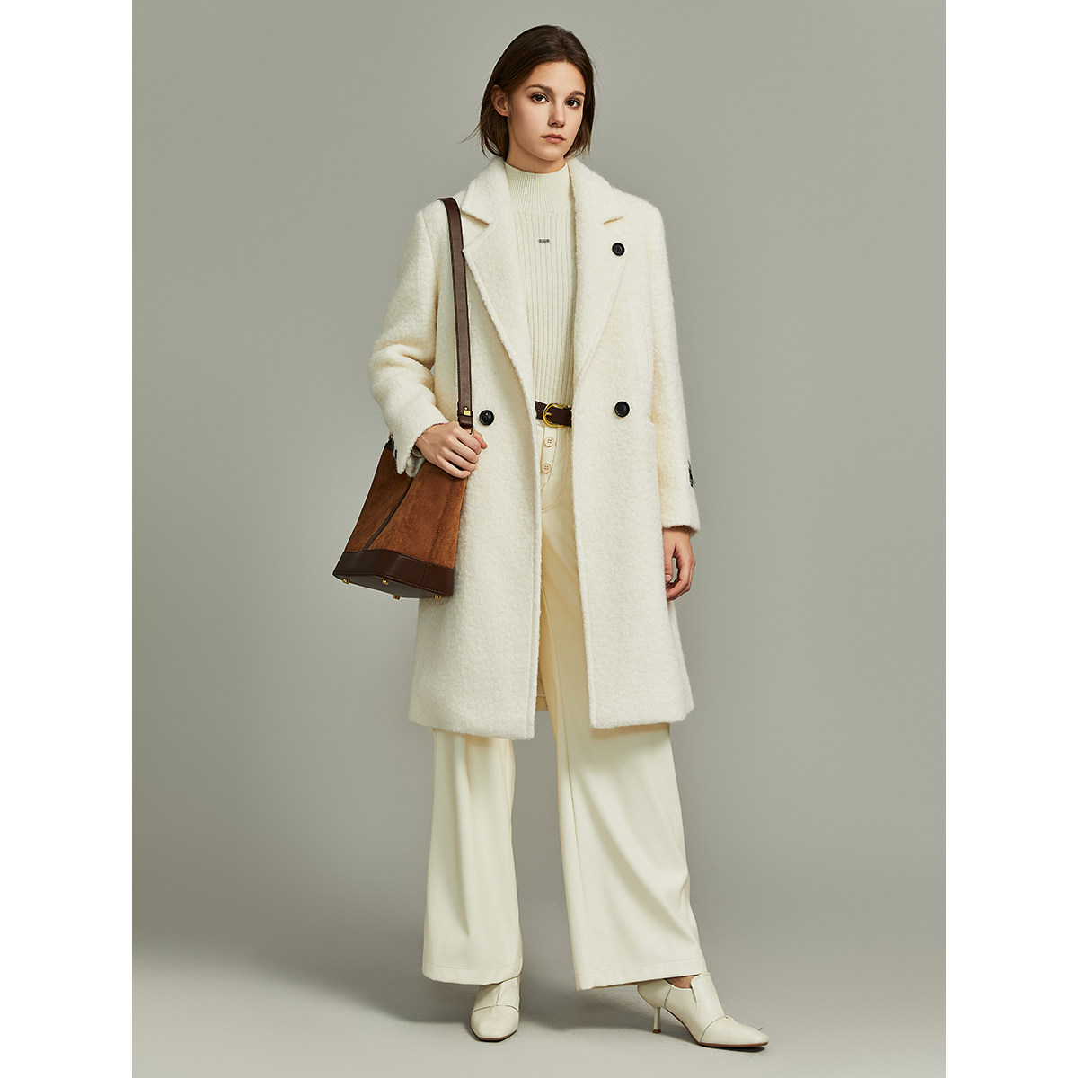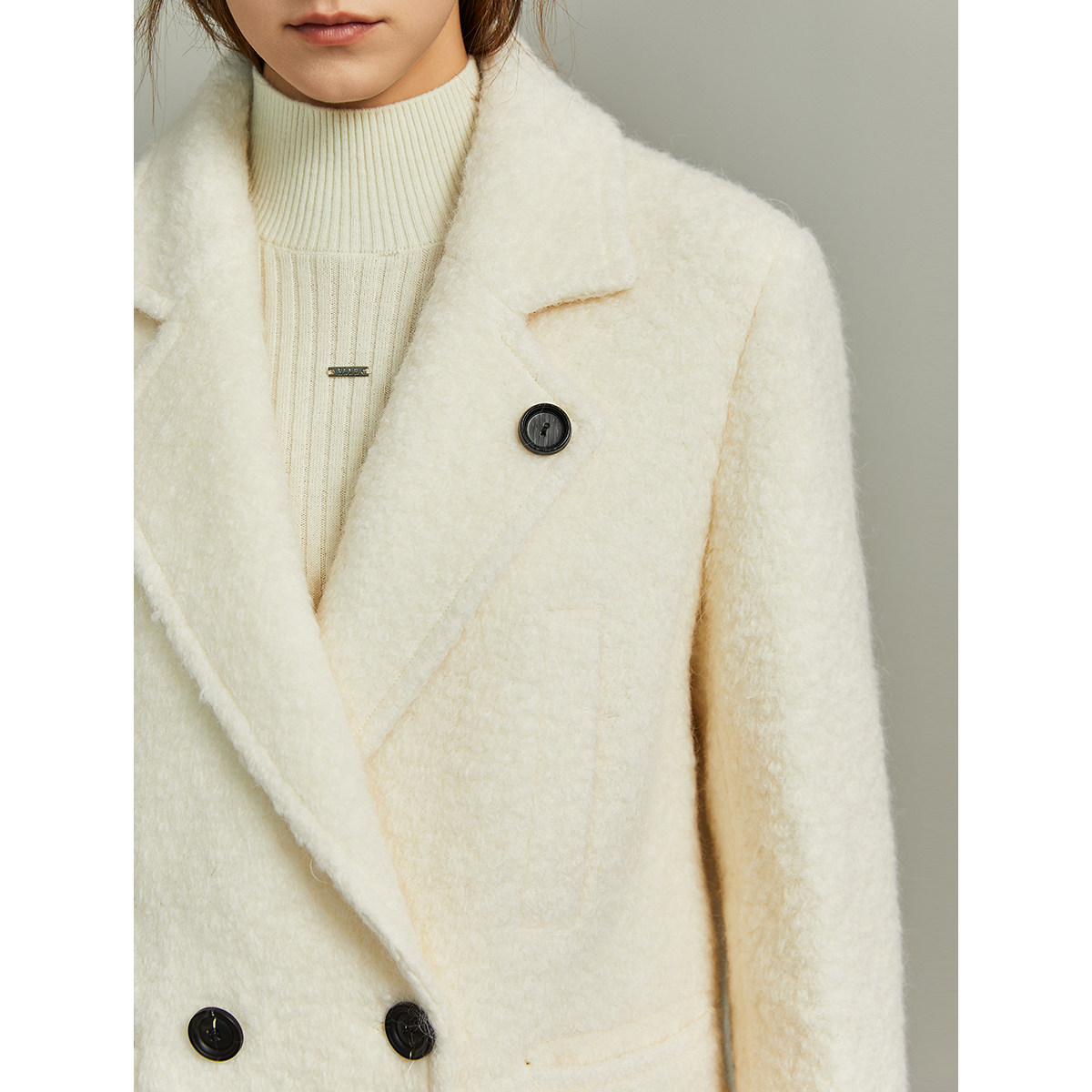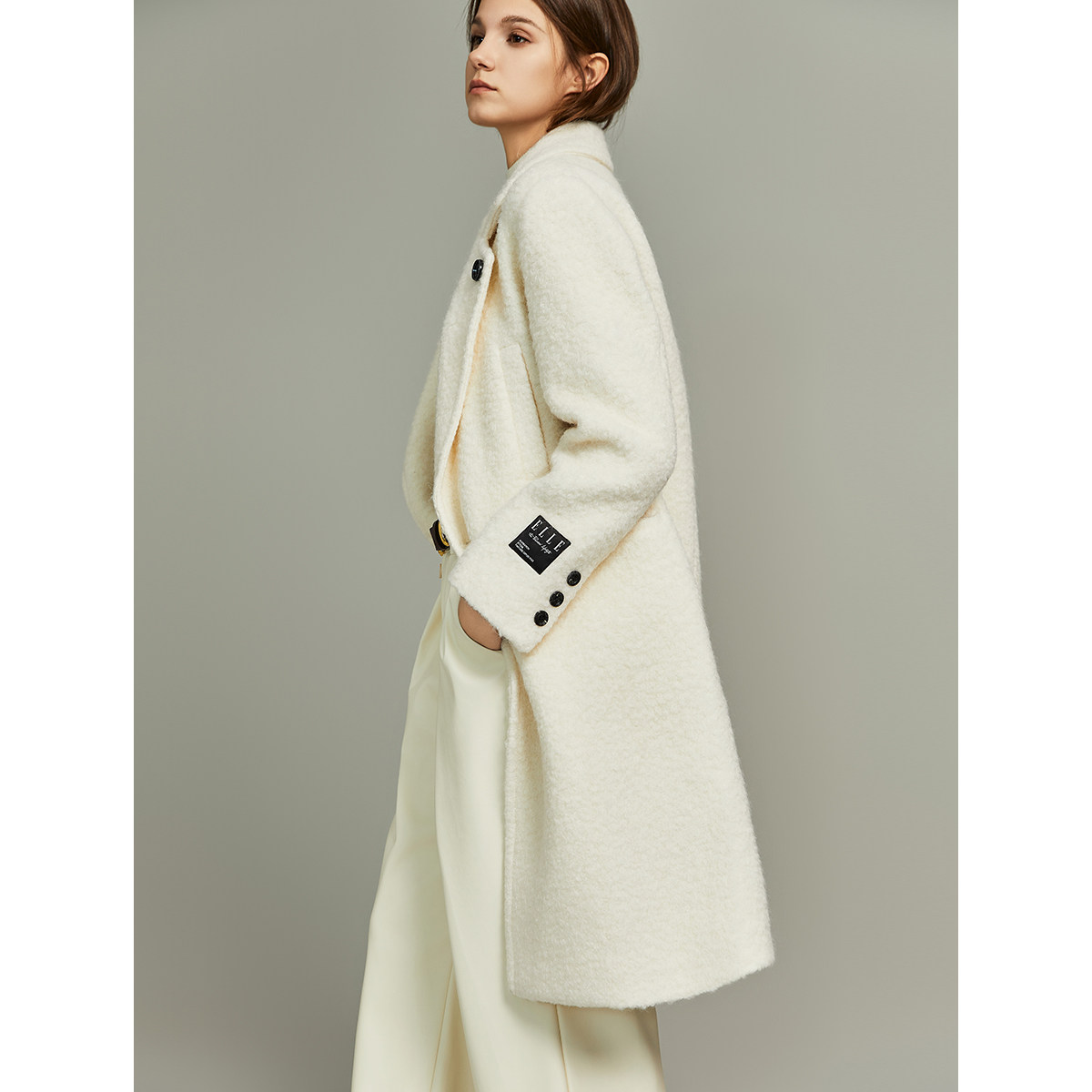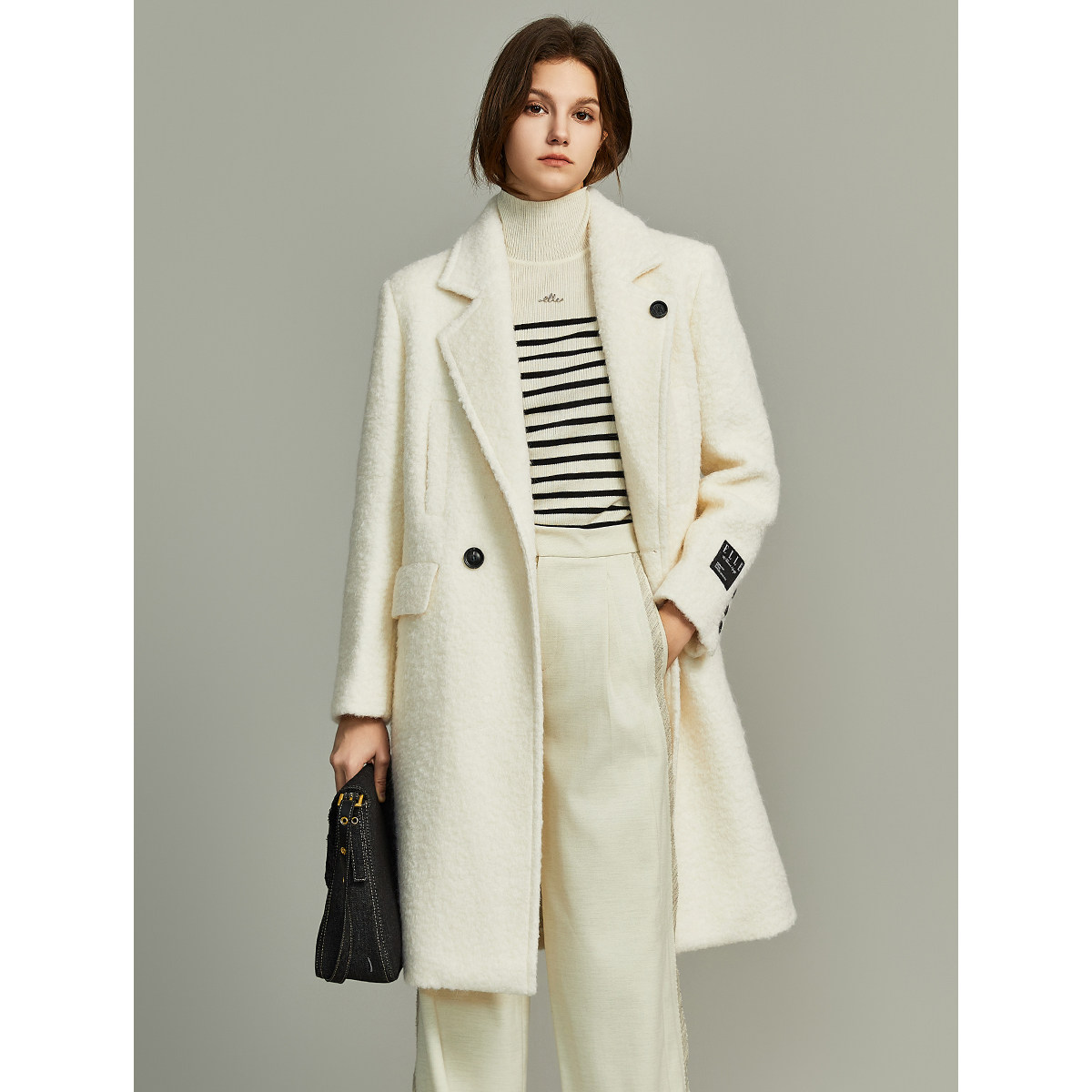 米白色中长款毛呢外套ELLE高级