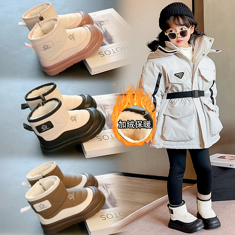 儿童雪地靴冬季2024新款女童加绒保暖棉靴男童短靴加厚中大童棉鞋