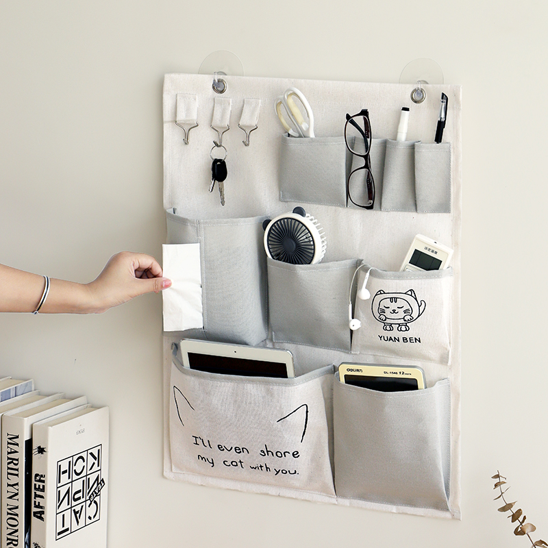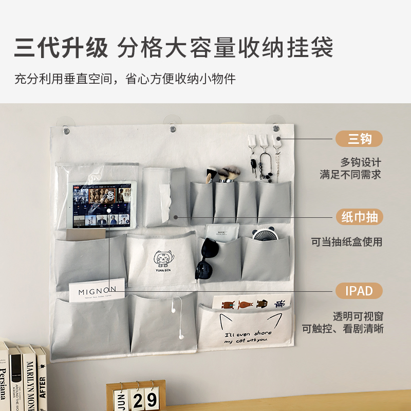 圆本悬挂式收纳挂袋床上门后墙挂挂袋布艺手机挂兜宿舍床头置物袋