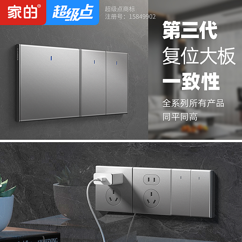 开关面板纯平复位大板金属磨砂黑