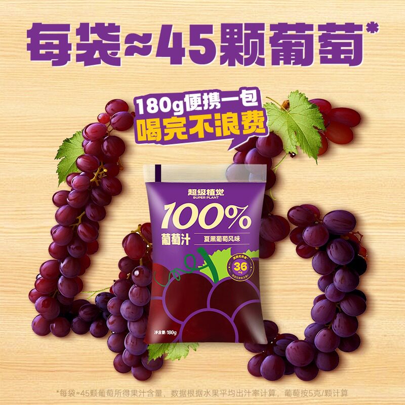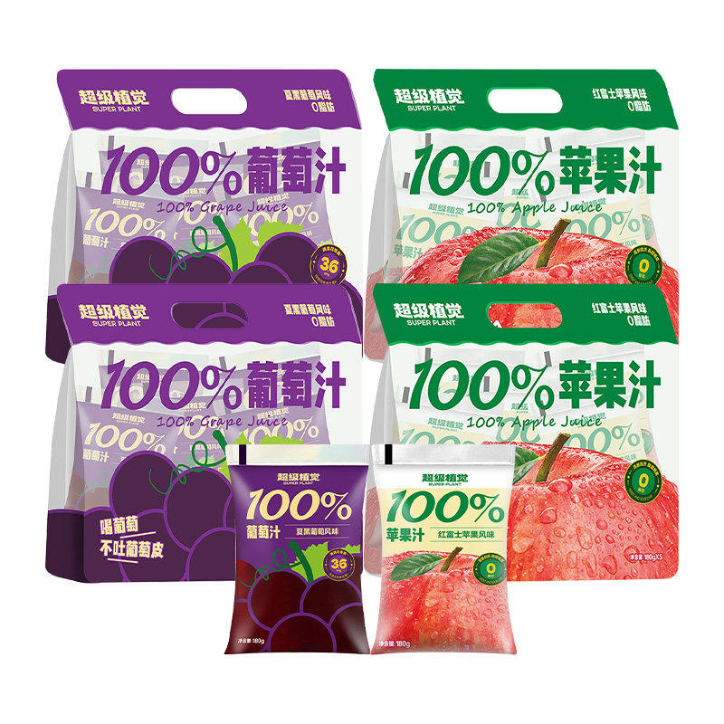 超级植觉100%苹果汁葡萄汁青柠芭乐汁果汁袋装饮料0脂肪酸防腐剂