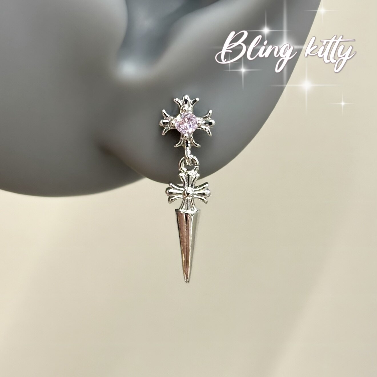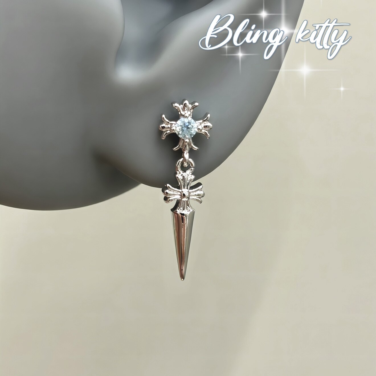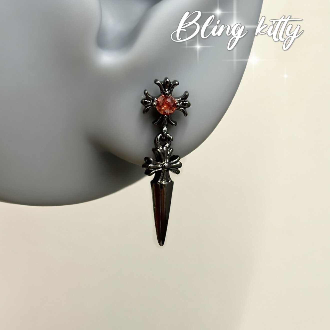 爆闪凯蒂|十字架恶魔闪钻耳钉F136钛合金女复古气质轻奢耳饰