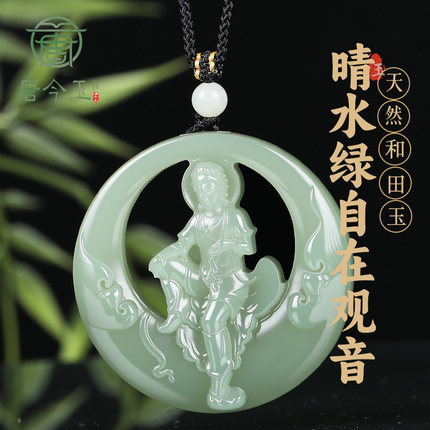唐今玉新疆和田玉自在观音吊坠和田玉佛光普照观音挂件精致吊坠