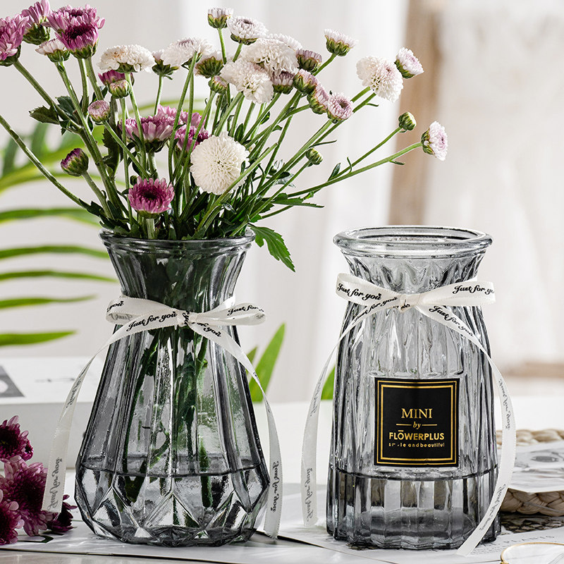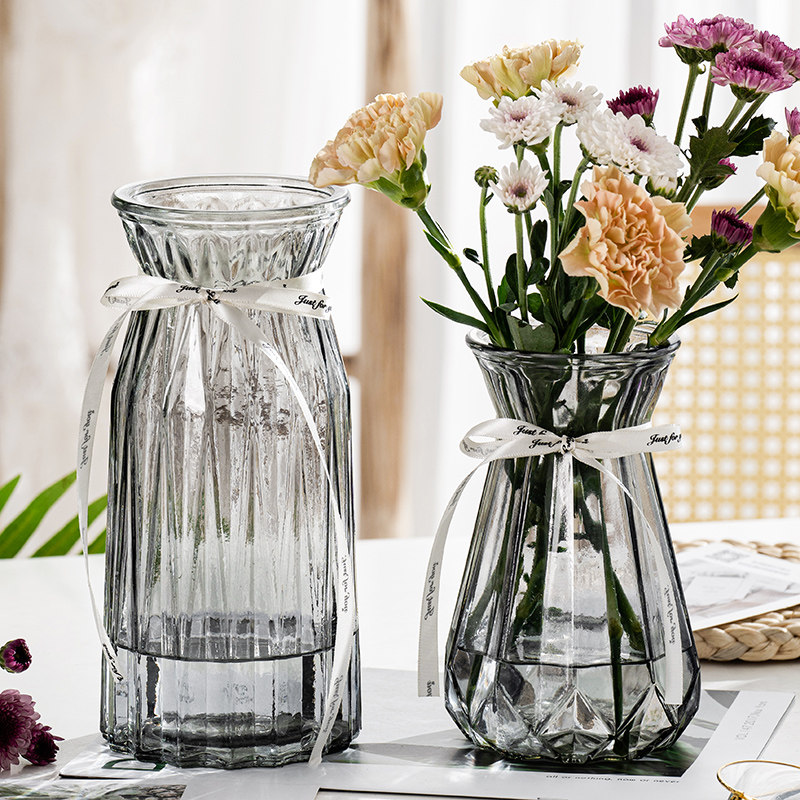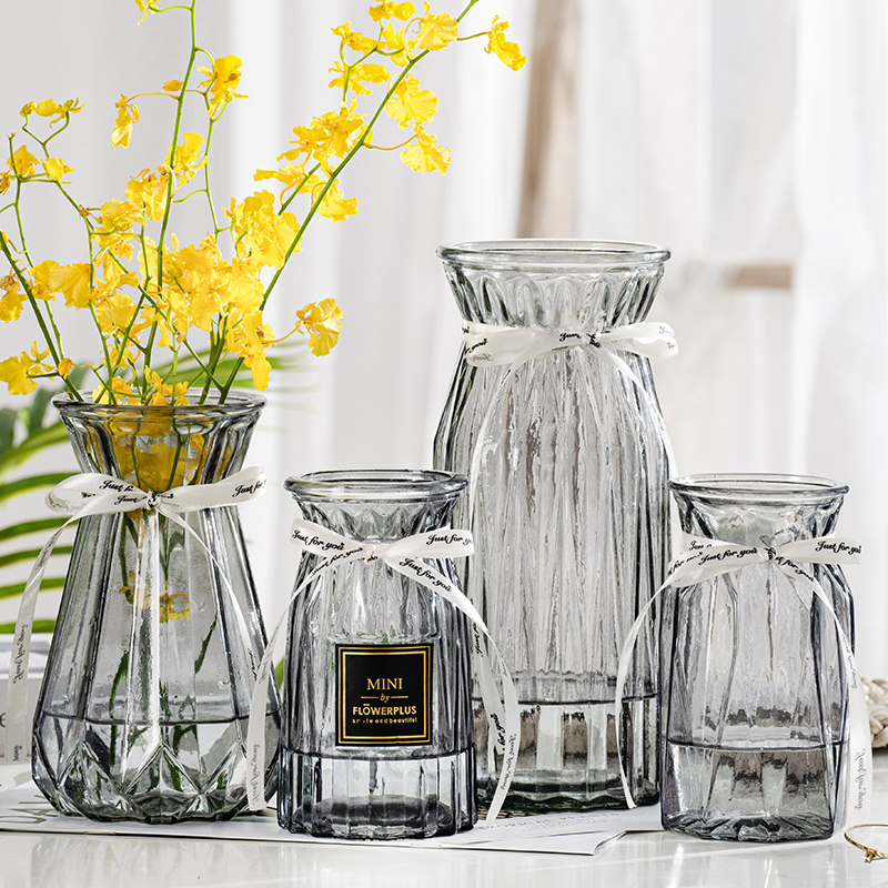 【四件套】透明玻璃花瓶水养百合富贵竹干鲜花插花瓶客厅装饰摆件