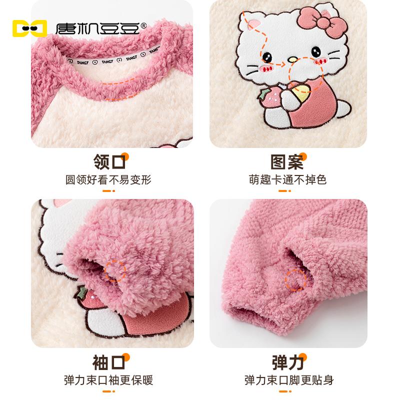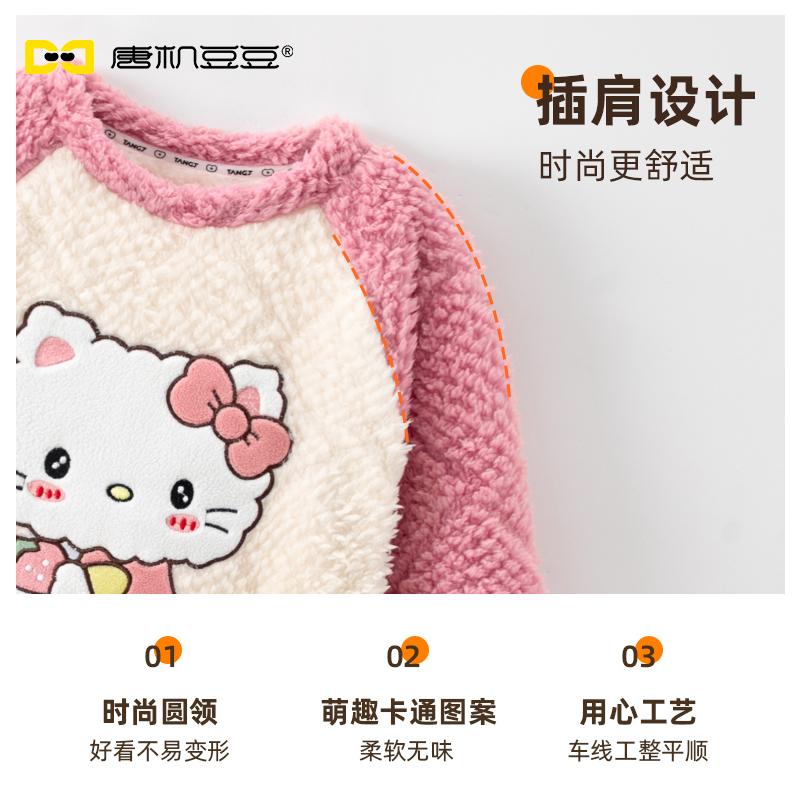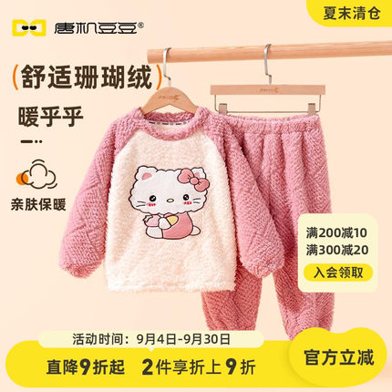 唐机豆豆2025年冬新款女童珊瑚绒加厚家居服卡通喵咪套装居家睡衣