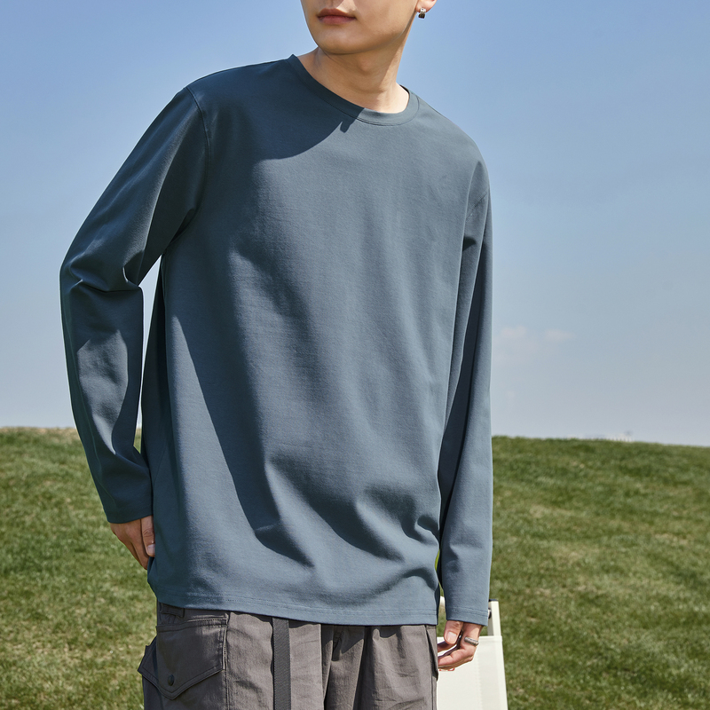 唐狮春季新款长袖T恤男生纯色上装衣服白色圆领纯棉内搭打底衫潮t