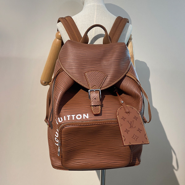 中古9新LV路易威登MONTSOURIS干邑色EPI XL双肩二手奢侈品包包