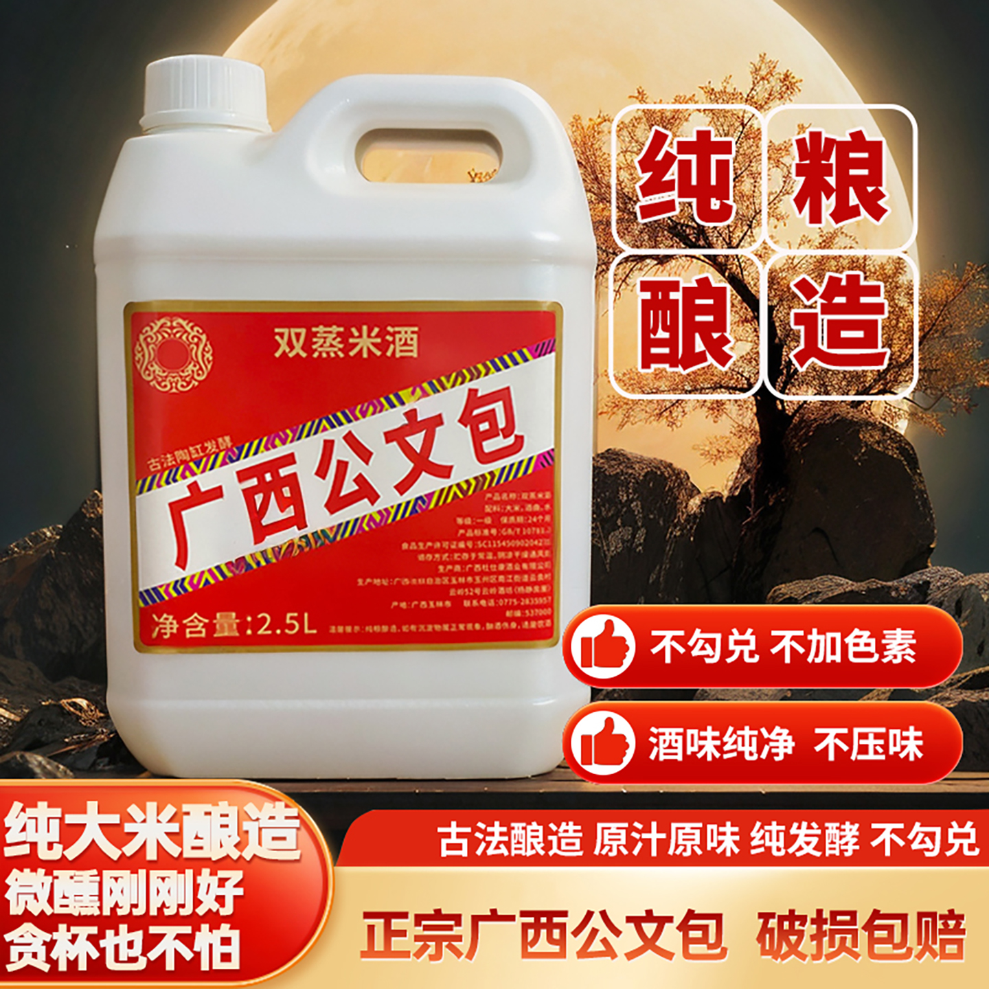 广西公文包白酒双蒸纯粮食杨枝甘露米酒22度32度42度52度桶装2.5L