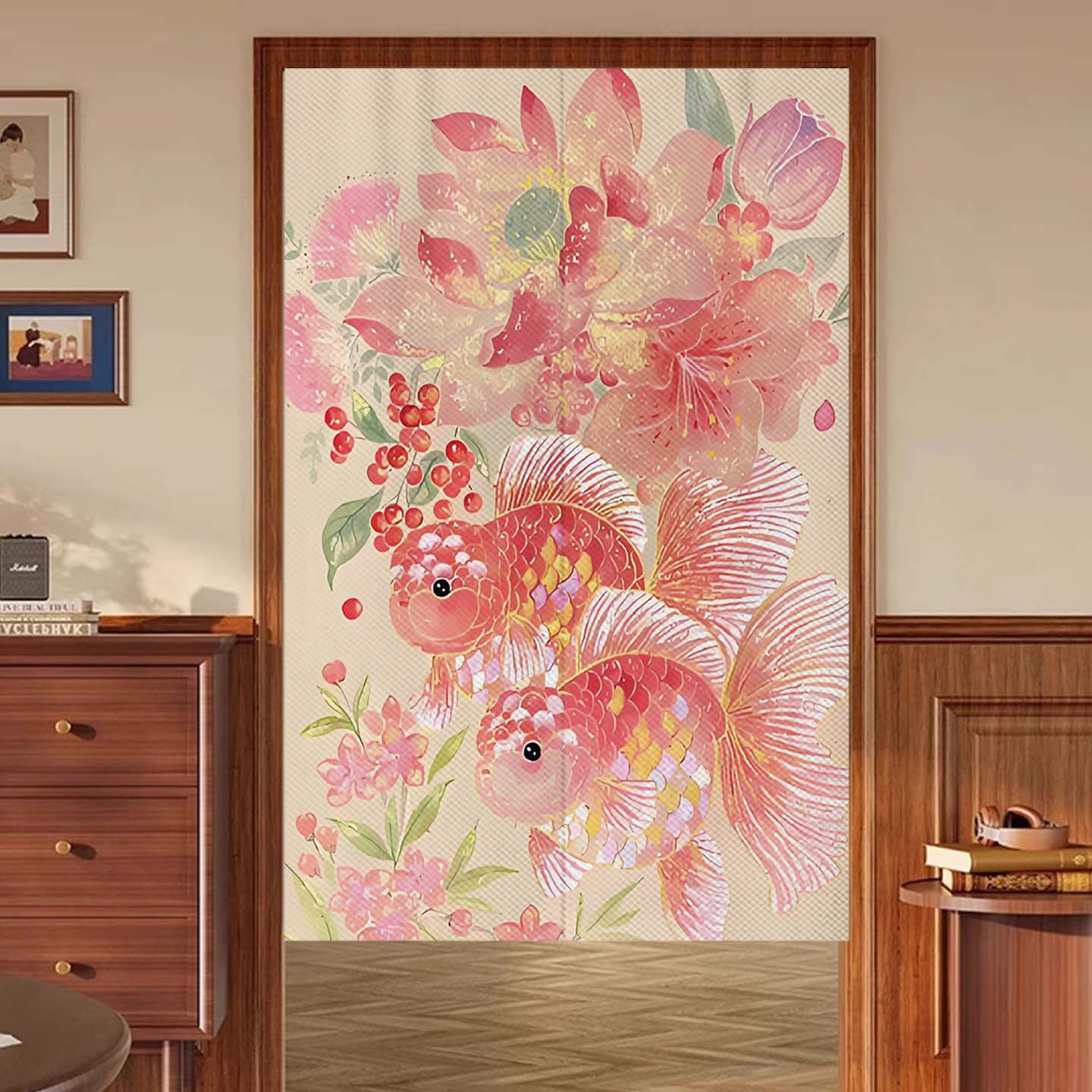 新中式布艺意境兰寿锦鲤门帘客厅卧室厕所隔断帘厨房卫生间半帘
