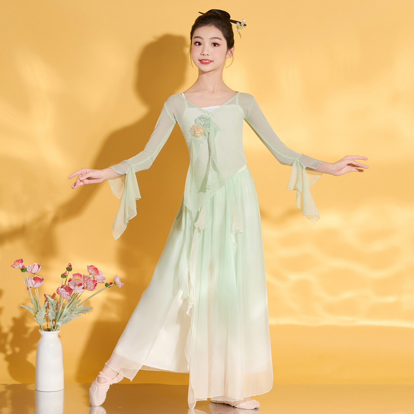 儿童古典舞演出服女少儿飘逸纱衣女童练功古风中国舞国风舞蹈服装