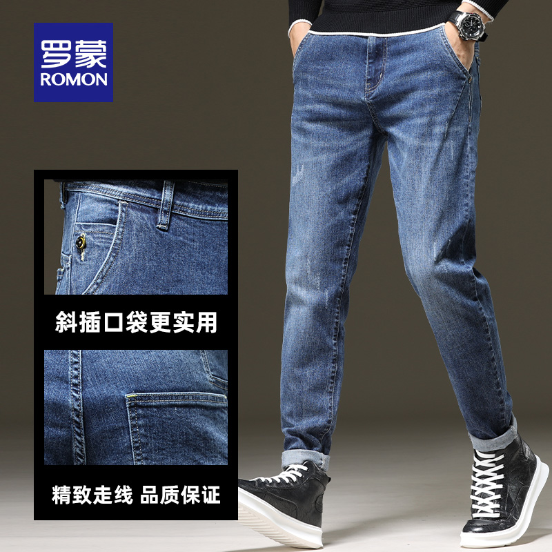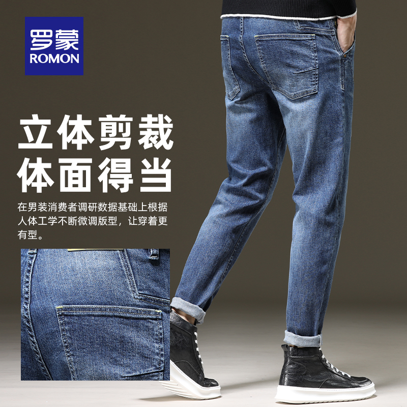 罗蒙男士牛仔裤2025春秋中青年时尚简约休闲裤韩版潮流小脚裤N1Z