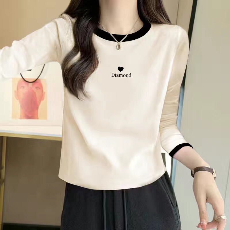 圆领长袖T恤女春秋薄款显瘦修身内搭打底衫显瘦洋气时尚百搭上衣