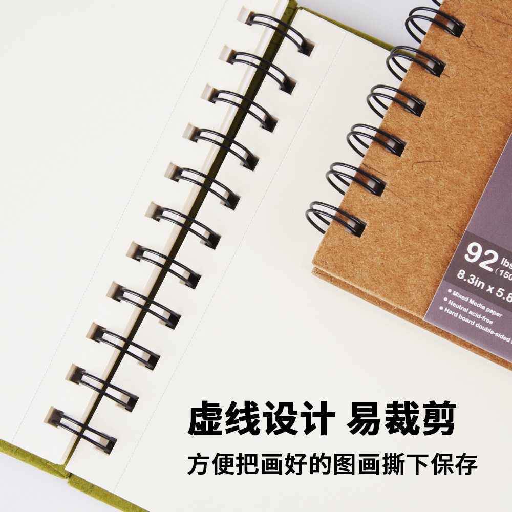 米范儿a5素描速写本加厚硬壳活页可撕线圈本可平摊高颜值丙烯马克笔绘画本150g空白纸美术生专用彩铅本