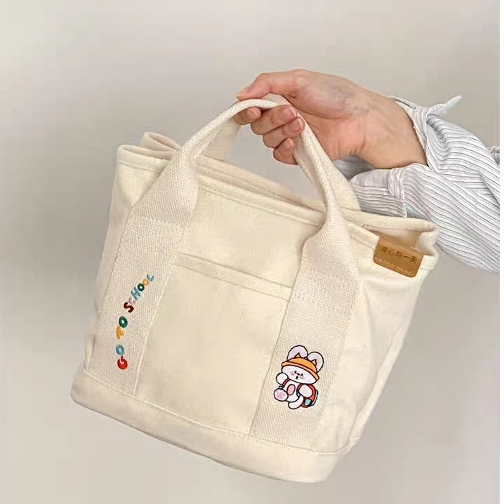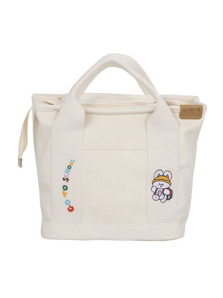 新款手提包帆布包日系女斜挎包妈咪包便当饭盒包布袋上班收纳包